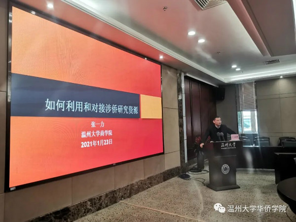 张一力作题为《如何利用和对接涉侨研究资源》的讲座。围绕获取侨务资源主题主线,从“实践者、研究者、管理者”三者关系,论文典型案例分析、工作团队研究路径、侨务机构沟通对接等方面,深入浅出的分析数据来源的路径和方法。