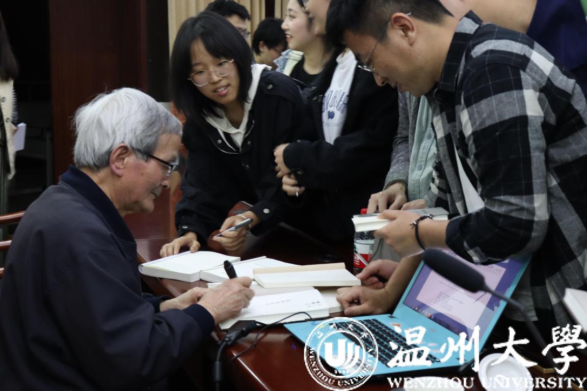 彭小燕教授对此次讲座进行评议,她表示透过洪老师的文本感受到了其背后对生命的爱,并认为“洪先生及北大的几位先生,就是我心目中当代中国的存在主义者。”随后,洪老师与现场师生进行了交流互动。在一个将近两个小时的讲座中,洪子诚老师向大家分享了自己的研究方法、人生经历与经验总结,为瓯地的雨夜赋予了别样的色彩。