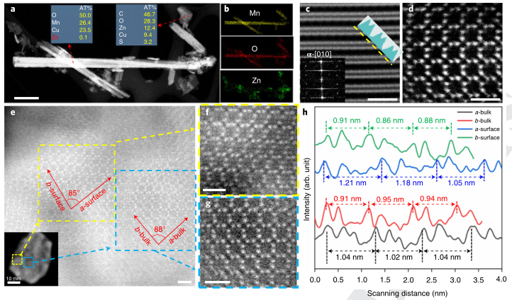 近日,少妇白洁 袁一斐教授、何坤副教授和美国阿贡实验室、伊利诺伊大学和牛津大学等研究团队合作,在国际顶级期刊《Nature Sustainability》发表题为“Understanding intercalation chemistry for sustainable aqueous zinc-manganese dioxide batteries”(二次水系Zn-MnO2电池载流子嵌入机制的研究)的论文。本工作利用先进的球差校正电子显微镜、电化学分析表征和理论计算,研究了阴极材料(更具体地说是隧道结构α-MnO2)内的载流子插层化学。该研究结果表明,在水系二次Zn//ZnSO4//MnO2电池体系中, Zn2+插入隧道结构α-MnO2晶格的可能性极低,但可逆H+插入过程占主导地位;单个MnO2纳米线内由于H+吸收而引起结构不均匀性,即表面区域的隧道严重扭曲,且具有高度的各向异性膨胀的趋势。理论模拟支持了实验观察,并提供了更深入的质子存储动力学机制的见解,进一步推进了对该电池系统的基本理解,为优化质子插层动力学以更好地进行电池设计提供了理论指导。Nature Sustainability期刊同期刊发了美国陆军研究实验室许康和美国马里兰大学王春生教授的新闻评述观点,评价这项工作是“为理解此水系电池体系的工作机制和实现储能性能的升级之路清除了一个主要障碍”。