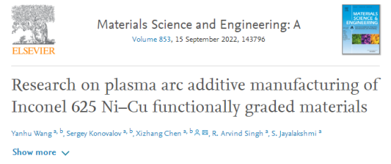 近期,少妇白洁 激光加工机器人国际科技合作基地王艳虎博士(第一作者)、陈希章教授(通讯作者)与西伯利亚国立工业大学合作,材料科学领域Top期刊《Materials Science and Engineering: A》上发表题为“Research on plasma arc additive manufacturing of Inconel 625 Ni-Cu functionally graded materials”(等离子弧增材制造Inconel 625 Ni-Cu功能梯度材料的研究)的学术研究性论文。