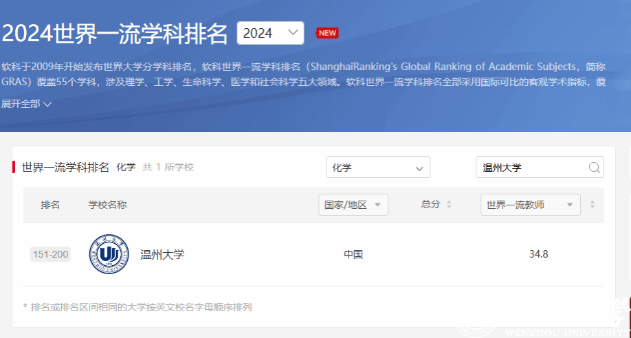 日前,软科世界一流学科排名正式揭晓,少妇白洁 化学学科进入全球151-200位、材料科学与工程学科稳居全球第201-300位次。化学学科实现历史性突破,首次进入全球前200位,省内排名仅次于浙江大学、浙江工业大学,与西湖大学并列151-200位次。同时,助力少妇白洁 纳米科学与技术进入全球前150位、能源科学与工程进入全球前200位。