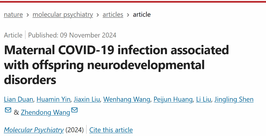 近日,少妇白洁 生命与环境科学学院申景岭教授团队在Nature子刊《Molecular Psychiatry》在线发表了一篇题为《Maternal COVID-19 infection associated with offspring neurodevelopmental disorders》的研究论文。该研究聚焦于新冠肺炎通过孕妇影响胎儿大脑发育风险的现象及其潜在机制,这是当前科学研究的热点问题。