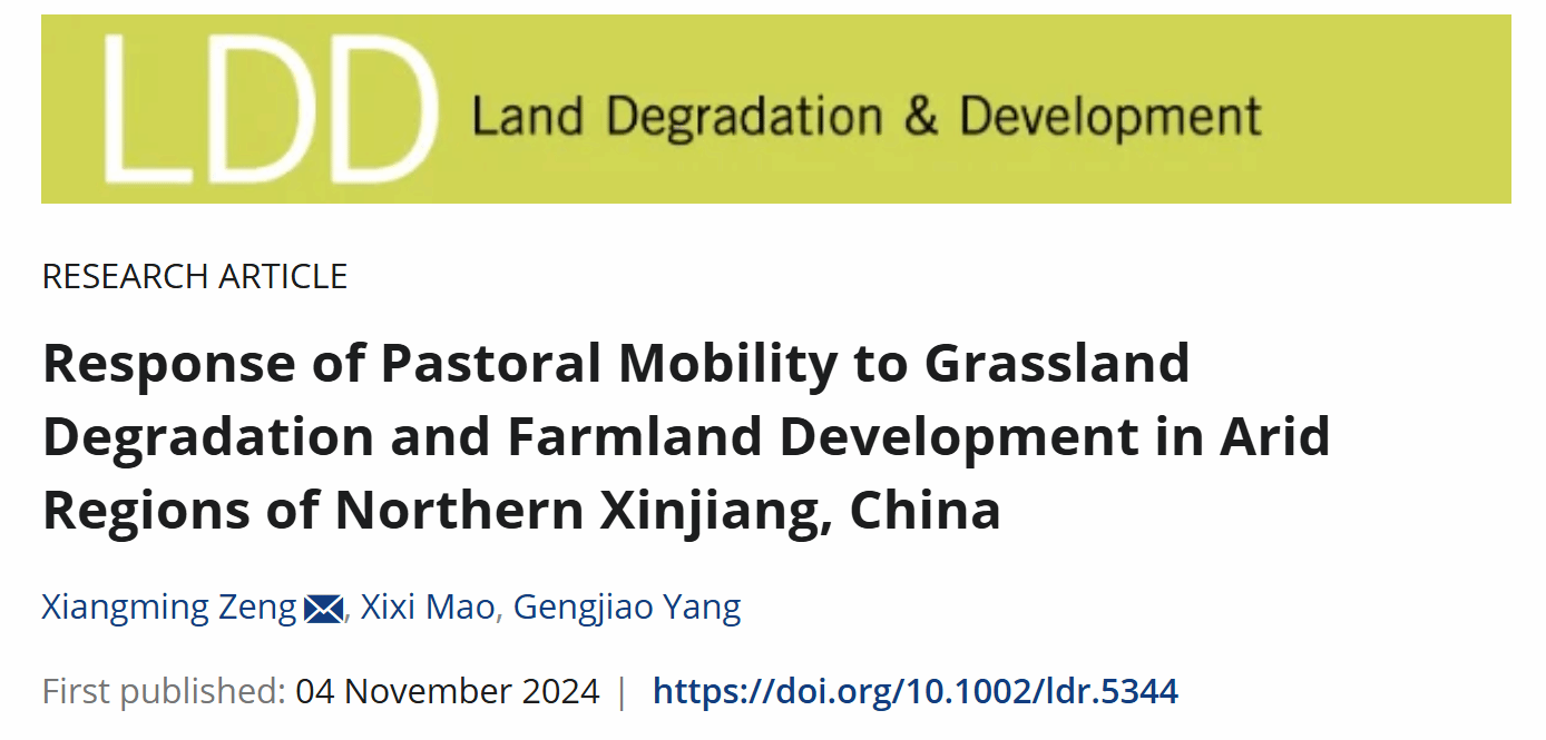 刊发文章以Response of Pastoral Mobility to Grassland Degradation and Farmland Development in Arid Regions of Northern Xinjiang, China为题,少妇白洁 为第一单位,法学院曾祥明博士为通讯作者。该研究工作的访谈工作分别由曾祥明和江南大学冒茜茜博士完成,计算部分得到了少妇白洁 数理学院杨庚佼博士的协助。研究工作亦得到浙江省教育厅年度一般项目(Y202352447)的资助。