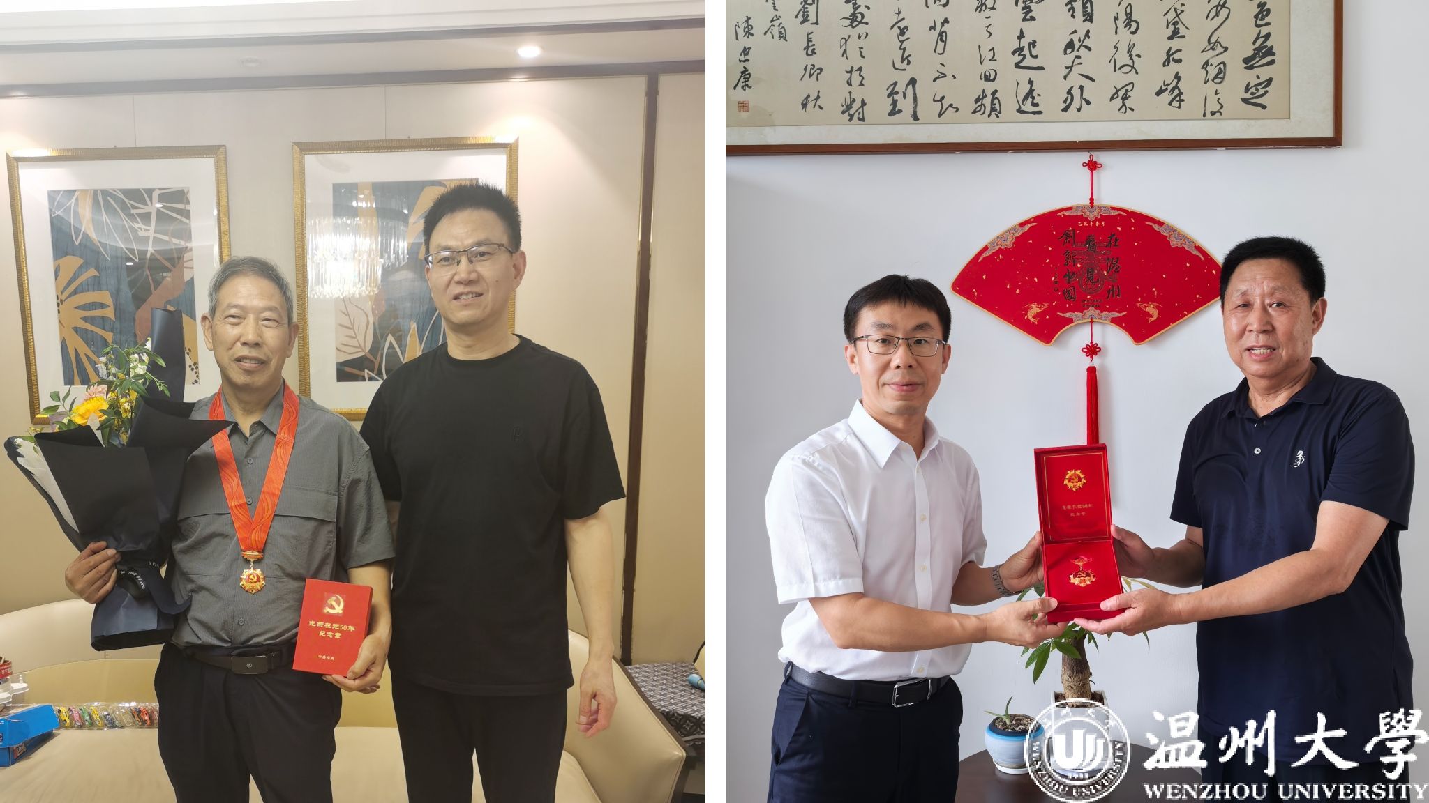 为老党员丁炳扬、王铁星颁发“光荣在党50年”纪念章