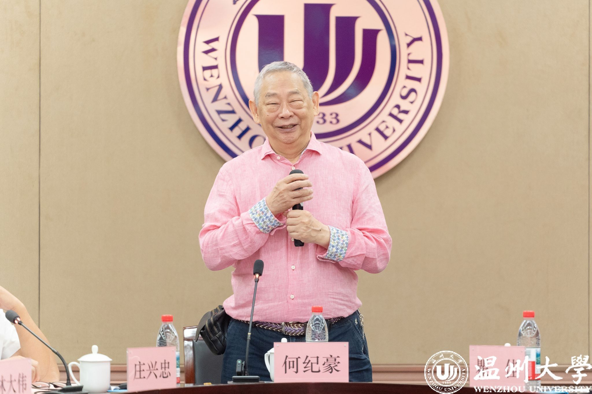 何纪豪先生致辞。他高度赞扬和充分肯定了育英事业发展促进会各理事单位过去一年所作的努力和取得的成绩,更对父母当初在温州捐赠过的单位能有如今的发展感到欣慰和自豪。他表示,日后将继续与各理事单位携手同行,推进温州市育英事业蓬勃发展。