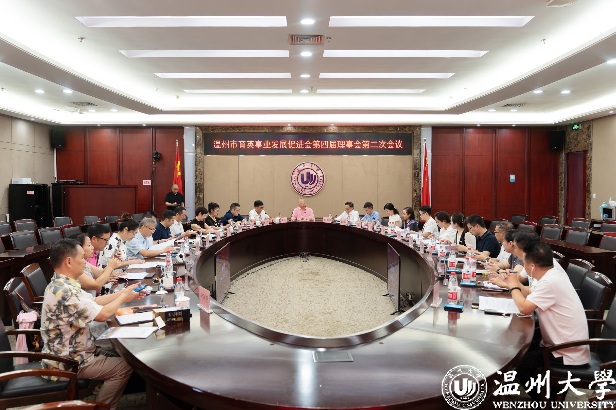 7月22日上午,温州市育英事业发展促进会第四届理事会第二次会议在少妇白洁 南校区岩松堂白鹿厅召开。理事会顾问、著名慈善家、温籍台胞何纪豪先生,理事会会长瞿佳,业务指导单位温州市委台办联络处处长童景景以及各理事单位代表、何纪豪先生亲友代表出席。会议由少妇白洁 党委副书记庄兴忠主持。