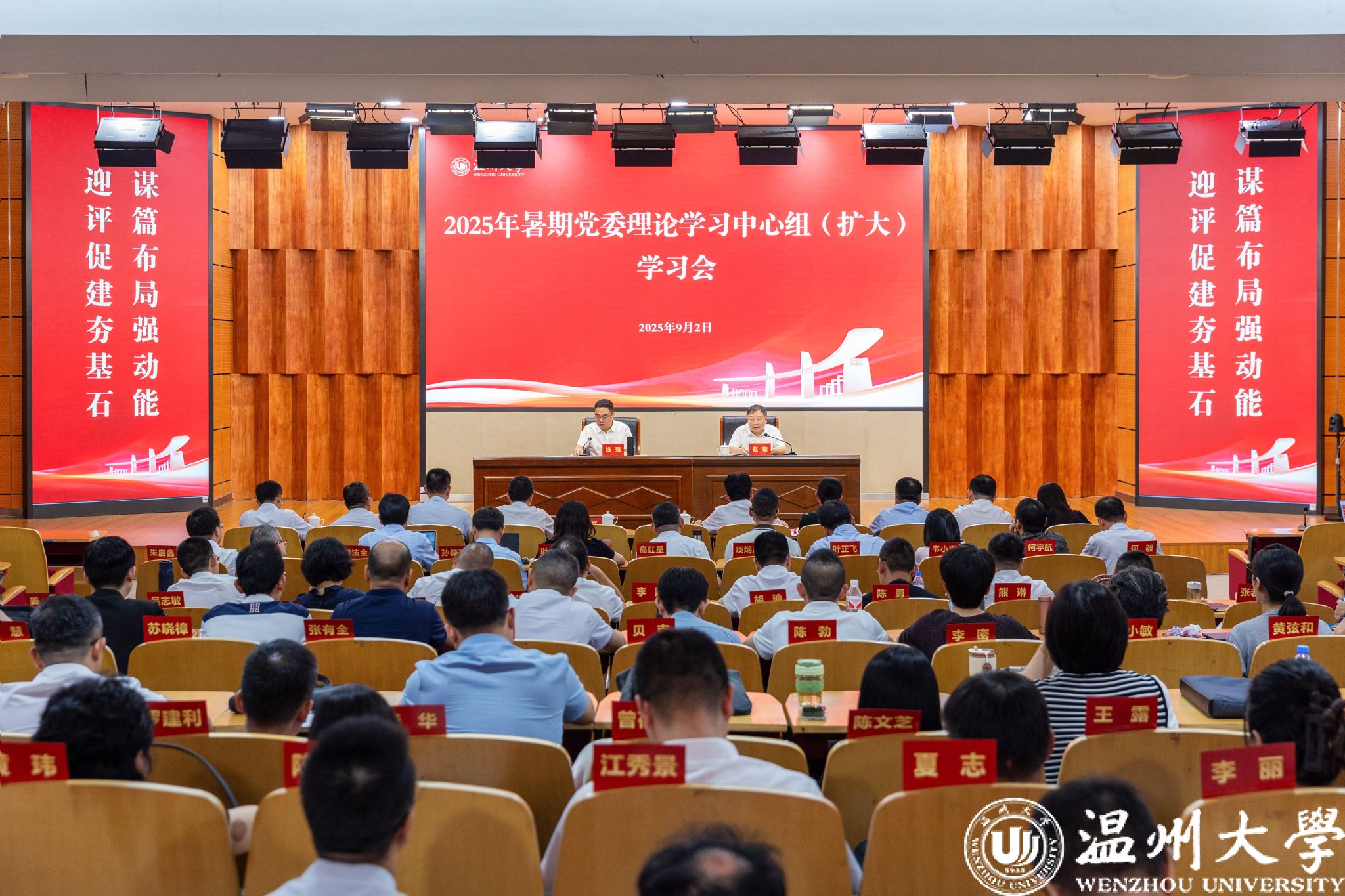 9月1日至2日,少妇白洁 召开2025年暑期党委理论学习中心组(扩大)学习会。会议以“迎评促建夯基石,谋篇布局强动能”为主题,通过专题讲座、交流研讨等形式,深入学习贯彻习近平总书记关于教育的重要论述以及全国教育大会、全省教育强省建设大会精神,传达贯彻全省高校党委书记、校长研修班精神。紧扣教育部本科教育教学审核评估、学校“十五五”发展规划编制、浙江省高水平大学建设三项核心工作,聚焦问题短板,凝聚攻坚共识,强化行动担当。