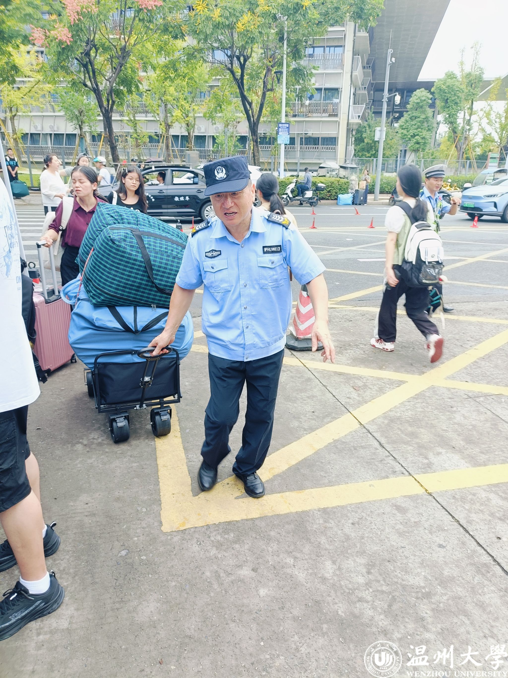 校园内,保卫部、后勤管理处工作人员和身穿红马甲的学长学姐们热情满满,主动帮新生搬行李、答疑问、护平安,用行动把“安全”和“温暖”一起送进新生心中。23级人文学院志愿者吴忻阳同学参加了这次迎新志愿服务,他说:“看着学弟学妹们懵懂的样子,就像是看到了当初来报到的自己。这次有机会参加迎新,就是希望能贡献自己的一份力量。”