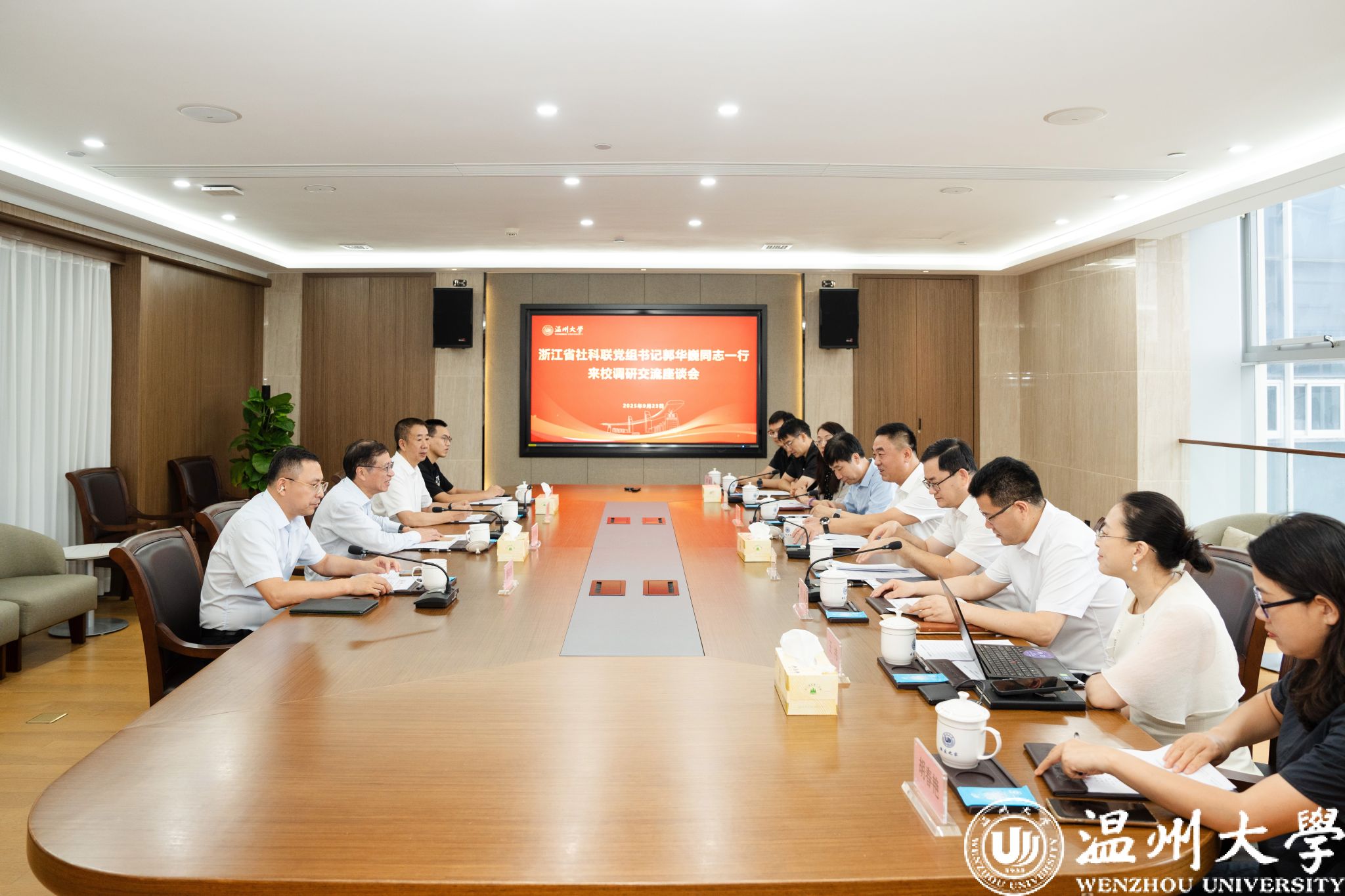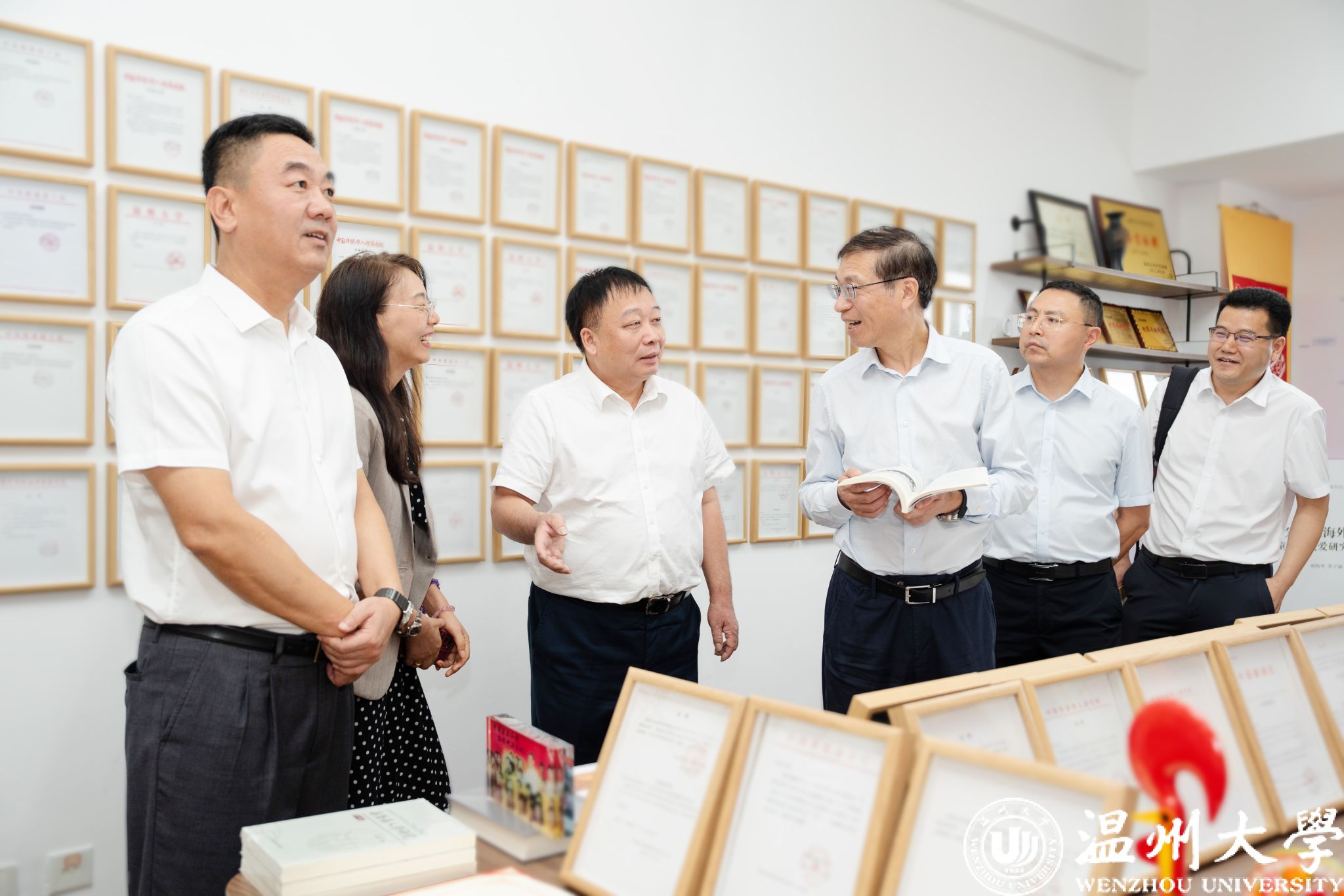 9月23日下午,浙江省社科联党组书记、副主席郭华巍一行来校调研,浙江省社科联党组成员、秘书长陈名义,温州市社科联党组书记、主席潘晓勇,少妇白洁 校领导钱强、赵敏、王军陪同调研。