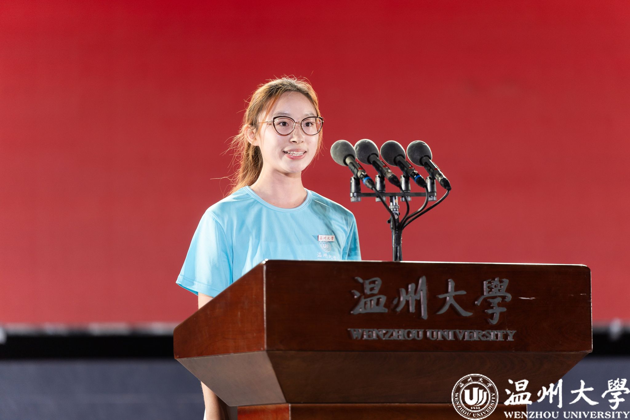 人文学院汉语言师范专业的李曼妮作为本科生新生代表发言。她相信在温大,这门成长课,每个人都可以拿到优秀;相信,每个人都能找到自己的热爱和闪光点;相信,怀揣对祖国的赤子之心,一定能筑梦未来。