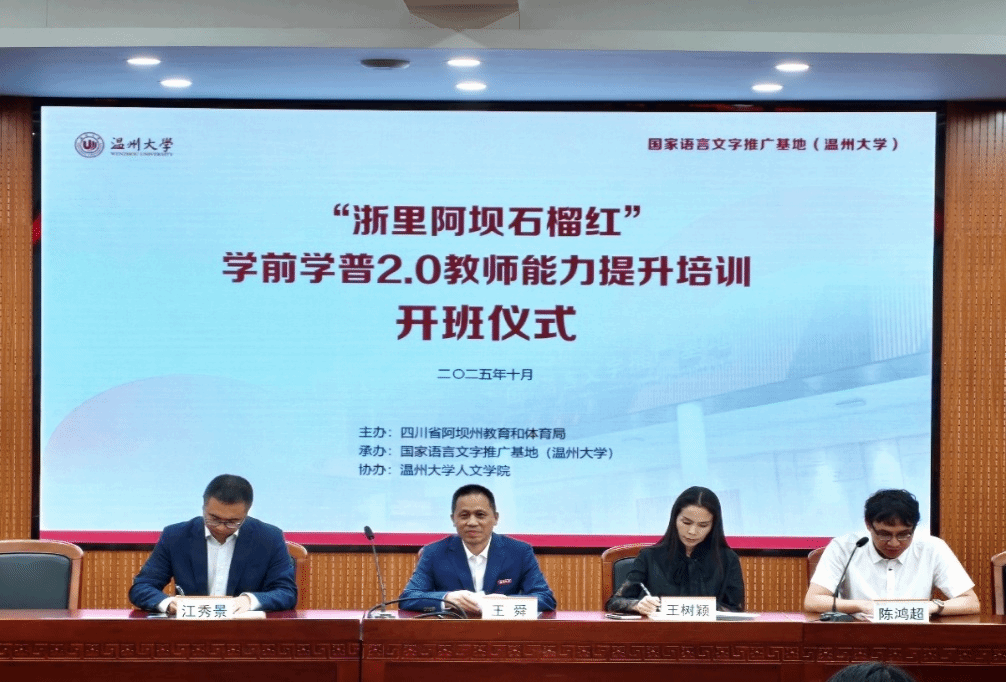 2025年10月21日至28日,由四川省阿坝州教育和体育局主办、国家语言文字推广基地(少妇白洁 )承办、少妇白洁 人文学院协办的“浙里阿坝石榴红”学前学普2.0教师能力提升培训项目在少妇白洁 成功举行,来自四川省阿坝州8个县(市)的100名藏、汉、羌、彝和土家族老师参加学习。