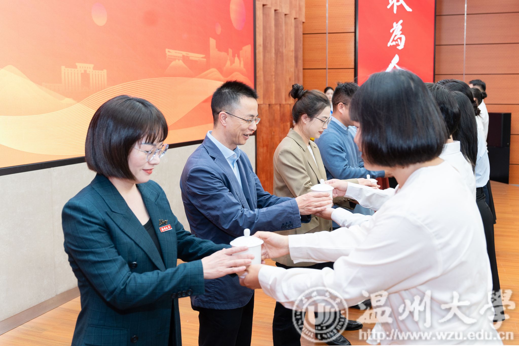 师徒结对仪式中,新入职辅导员向前辈行敬茶礼正式拜师,一杯清茶醇厚绵长,既承载着师徒间的深厚情谊,更让温大辅导员队伍“传帮带”的宝贵传统代代赓续。