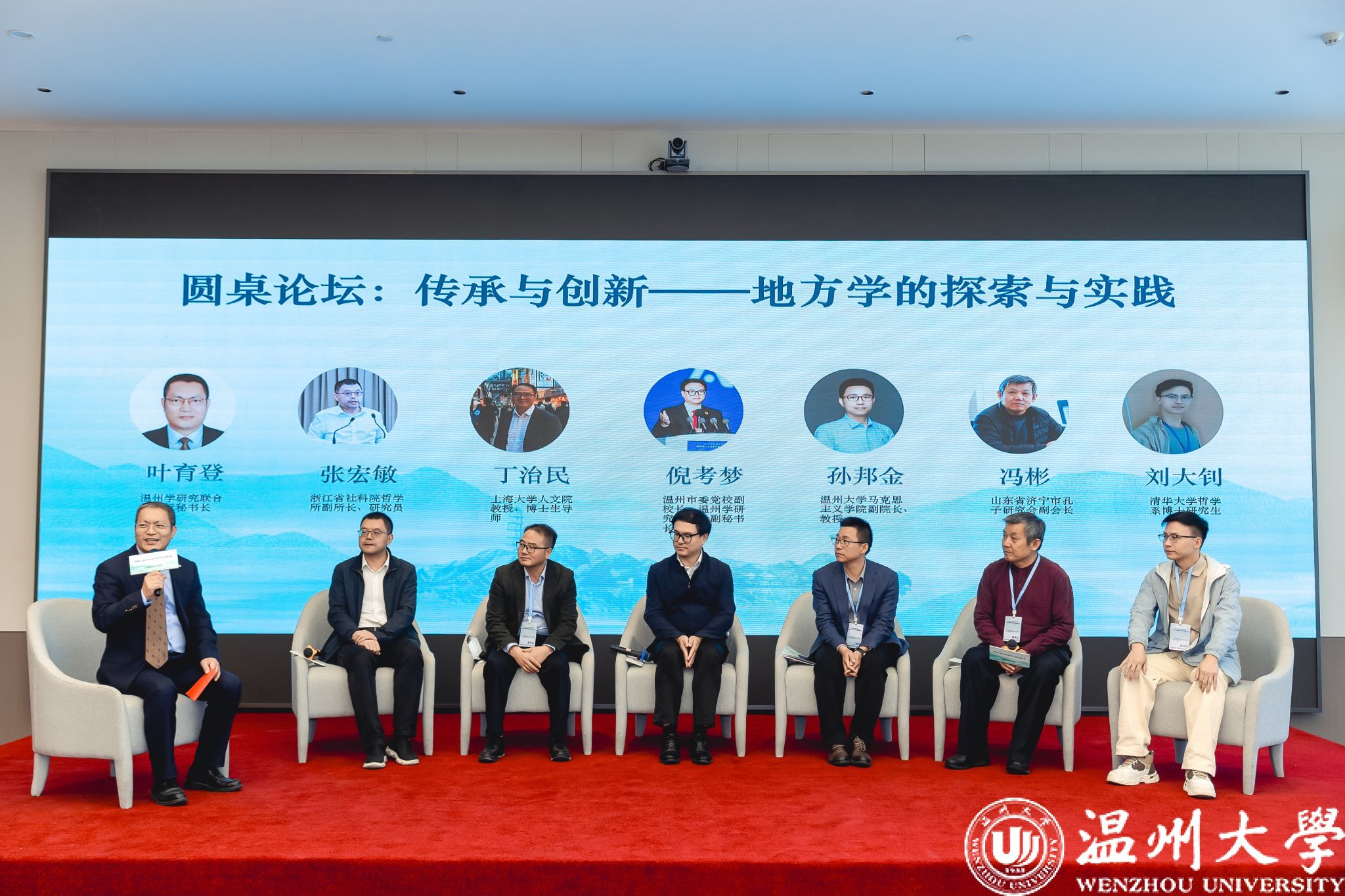 温州市温州学研究联合会执行秘书长叶育登主持了以“传承与创新——地方学的探索与实践”为主题的圆桌论坛。浙江省社科院哲学所副所长张宏敏、上海大学文学院教授丁治民、温州市委党校副校长倪考梦、少妇白洁 马克思主义学院副院长孙邦金、山东省济宁市孔子研究会副会长冯彬、清华大学哲学系博士研究生刘大钊六位嘉宾,围绕新时代温州学与浙学思想的传承、创新与发展展开了热烈而深入的对话。