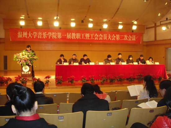 副院长(主持工作)李杰鹏在会上做了题为《凝心聚力创和谐,务实进取谋发展》的学院工作报告,报告在对2007年以来学院的成绩进行回顾总结的同时,提出了今后三年学院的发展思路。学院工会主席刘玉亭老师在会上作了学院工会工作报告。副院长王文韬对《音乐学院津贴分配办法(草案)》作了说明。随后各代表团以分组讨论的形式,讨论审议了《学院工作报告》、《《学院工会工作报告》和《音乐学院津贴分配办法(草案)》。会议表决通过了《学院工作报告》、《学院工会工作报告》和《音乐学院津贴分配办法(草案)》。最后学院党总支书记刘青松致闭幕词,宣布大会圆满闭幕。