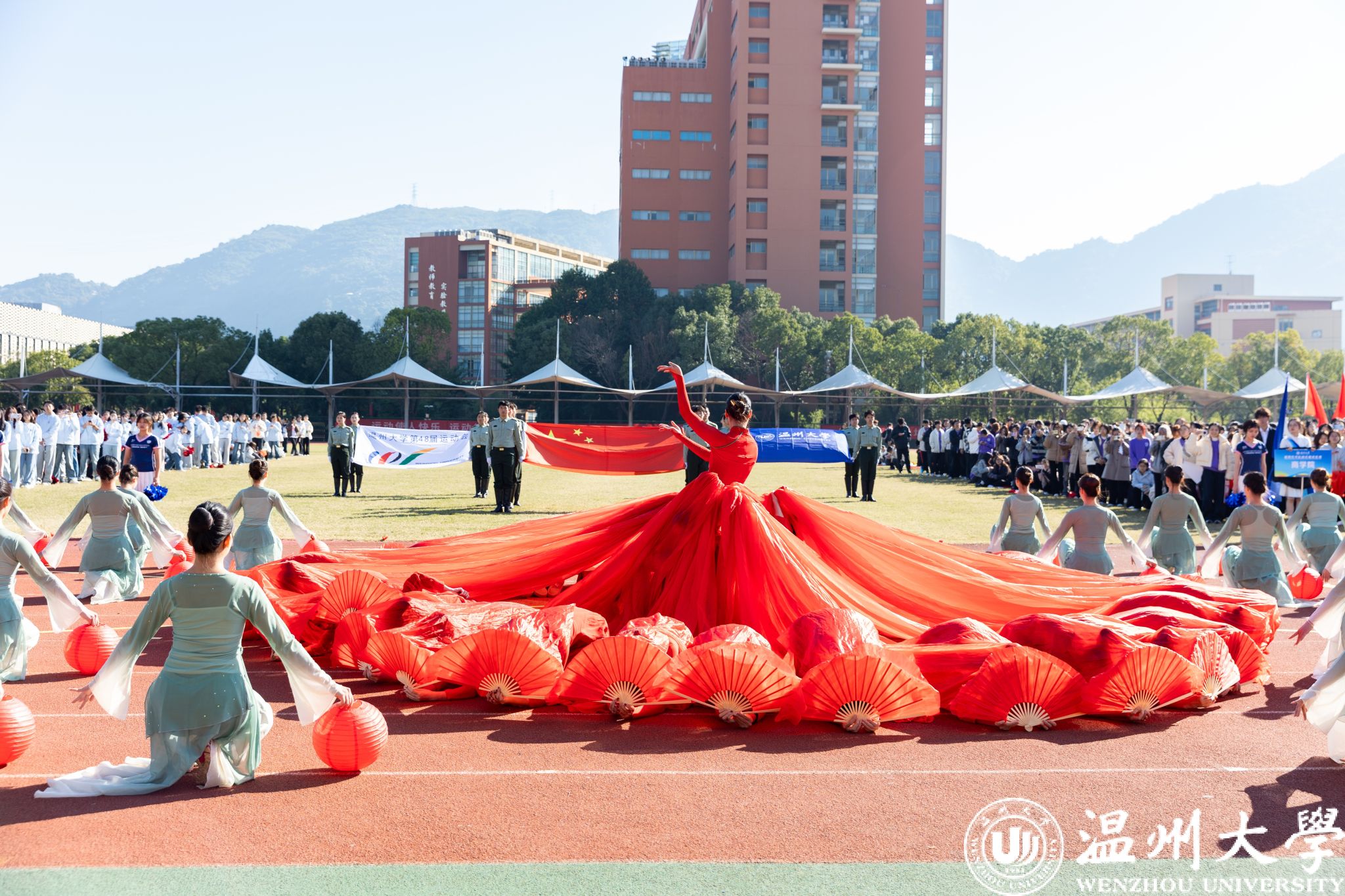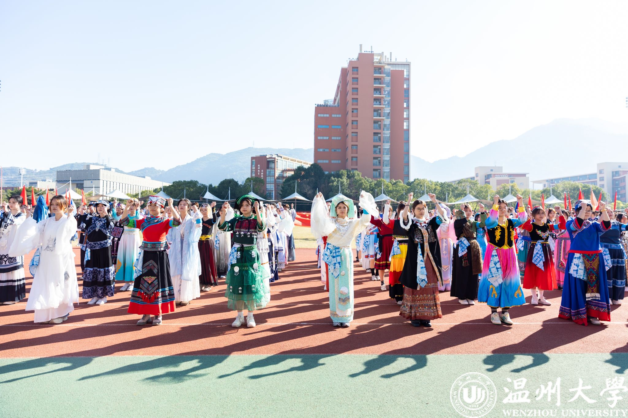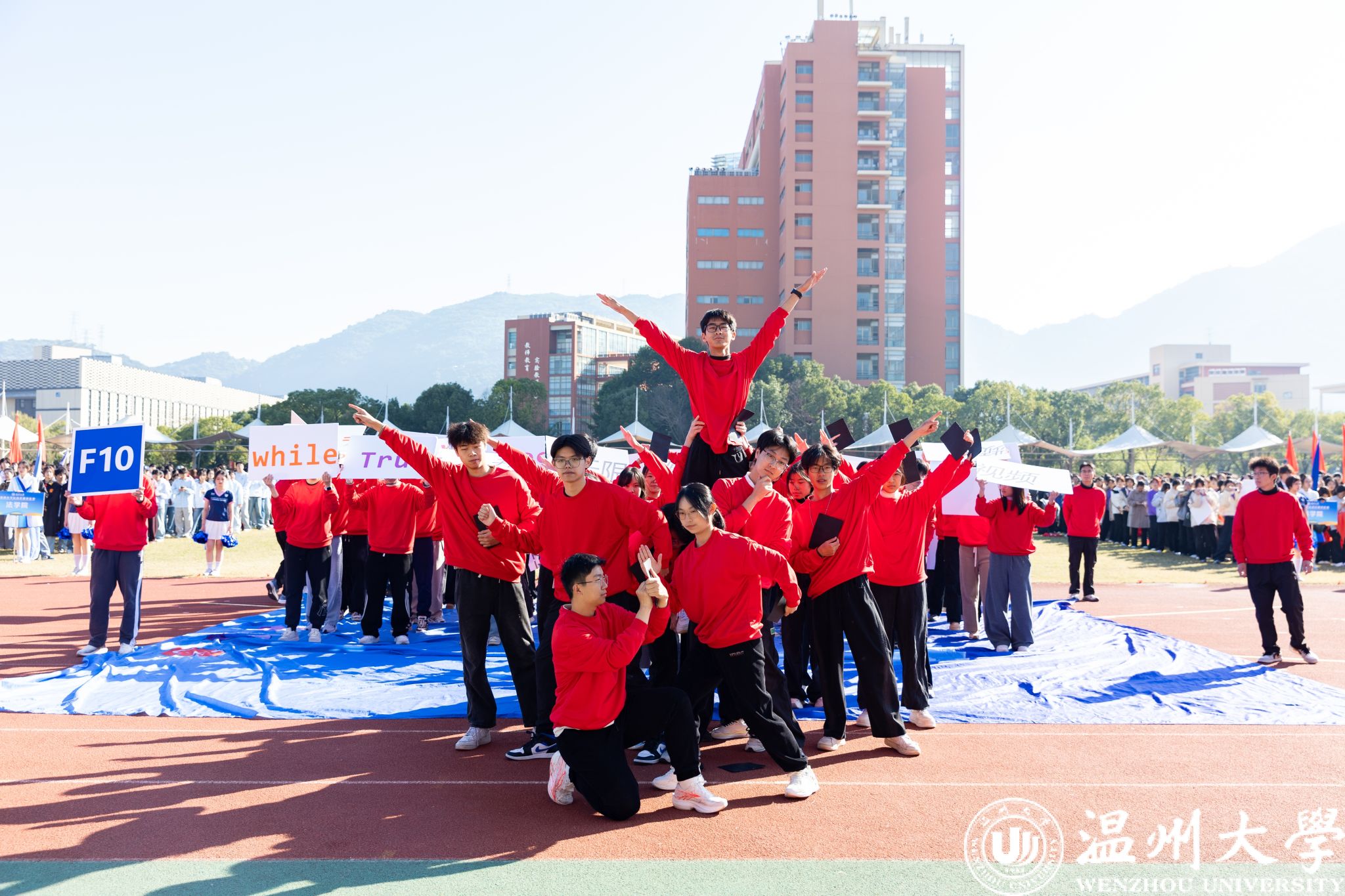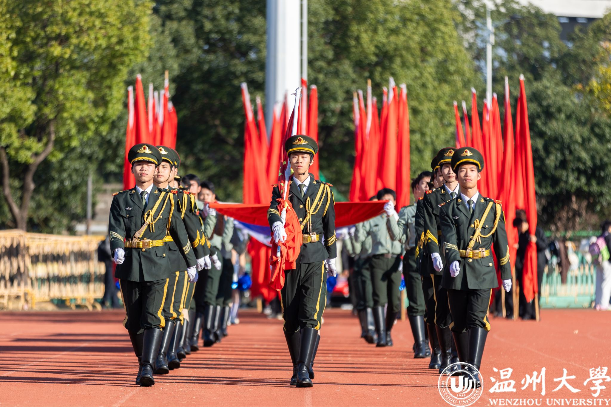 各学院方阵依次走过主席台,创意纷呈间尽显学院独特底蕴与昂扬风采。有的学院紧扣专业特色巧思编排,将学科魅力与文化内涵融入展示之中;有的学院学子身着绚丽民族服饰,以挺拔姿态诠释团结奋进的精神内核。全场学子精神抖擞、口号铿锵,以饱满昂扬的姿态,生动彰显出温大学子的蓬勃朝气与奋进斗志。
