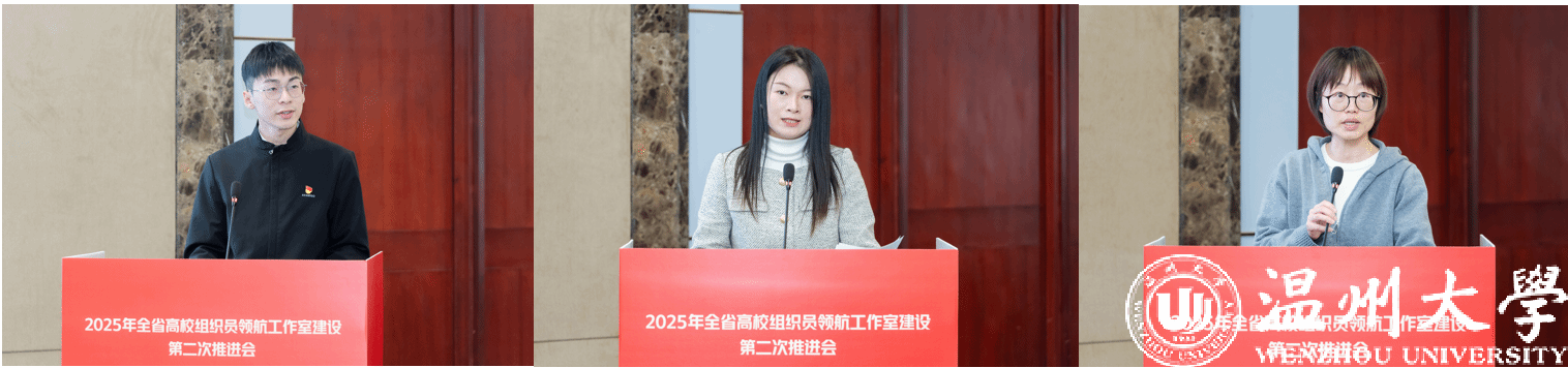 “组织员开讲”环节,“星火师炬”组织员领航工作室“四强”组织员周奕铮、“垦荒立心”组织员领航工作室“四强”组织员胡竞引、“潮起钱塘”组织员领航工作室“四强”组织员董蓉蓉分别以《构建先锋指数新体系 激发党员队伍新动能》《产教融合视域下高职院校党员教育“五大课堂”的基层实践——以台州科技职业学院经贸管理学院为例》《做好毕业生党员组织关系转移工作的实践与思考》为题进行经验分享。