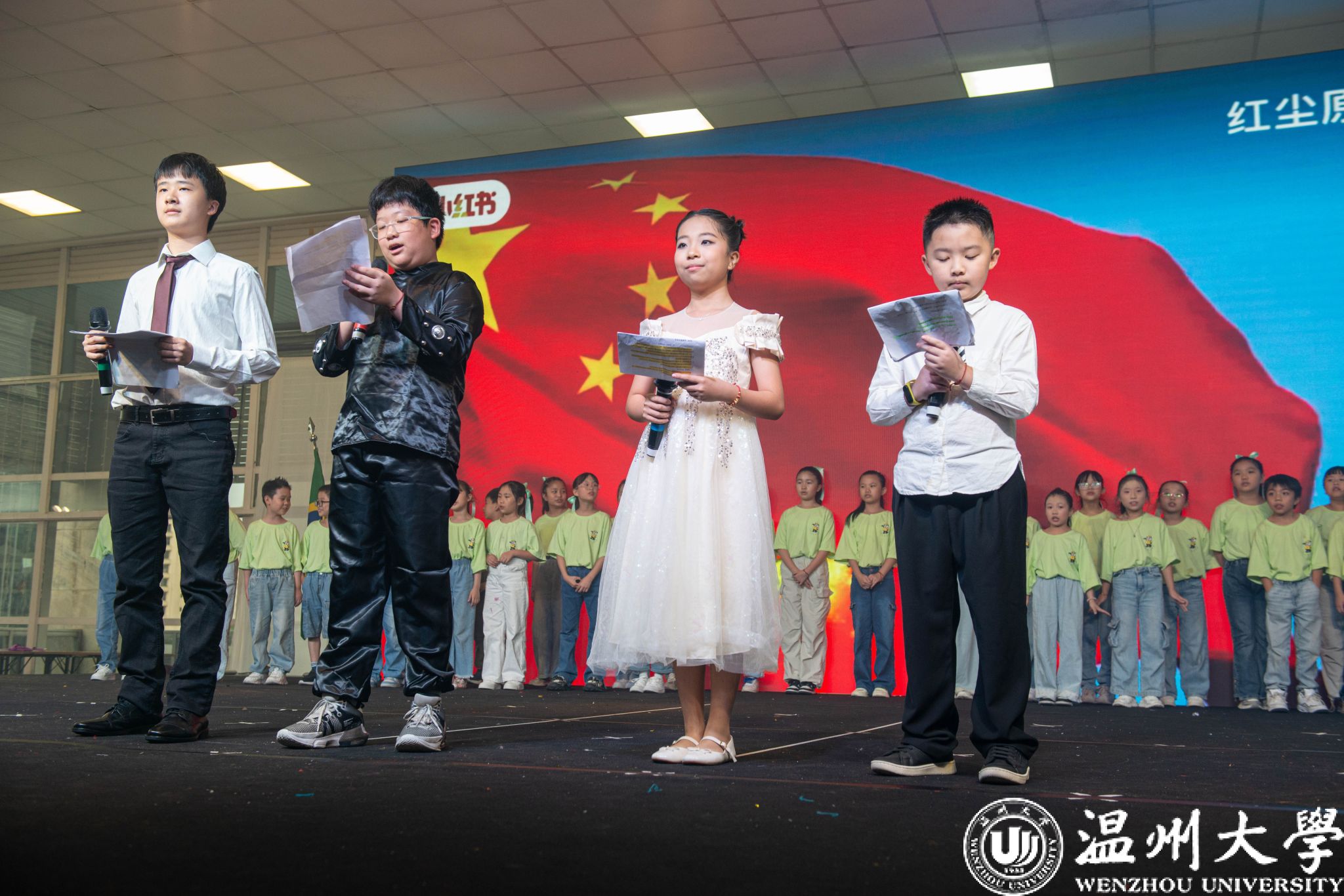 结营仪式结束后举行了营员汇报演出。在“龙腾雅韵启华章”、“童声墨色绘山河”、“礼秀传奇向未来”三个篇章中,孩子们展示了七天来的学习成果。汇报演出由四位营员主持。