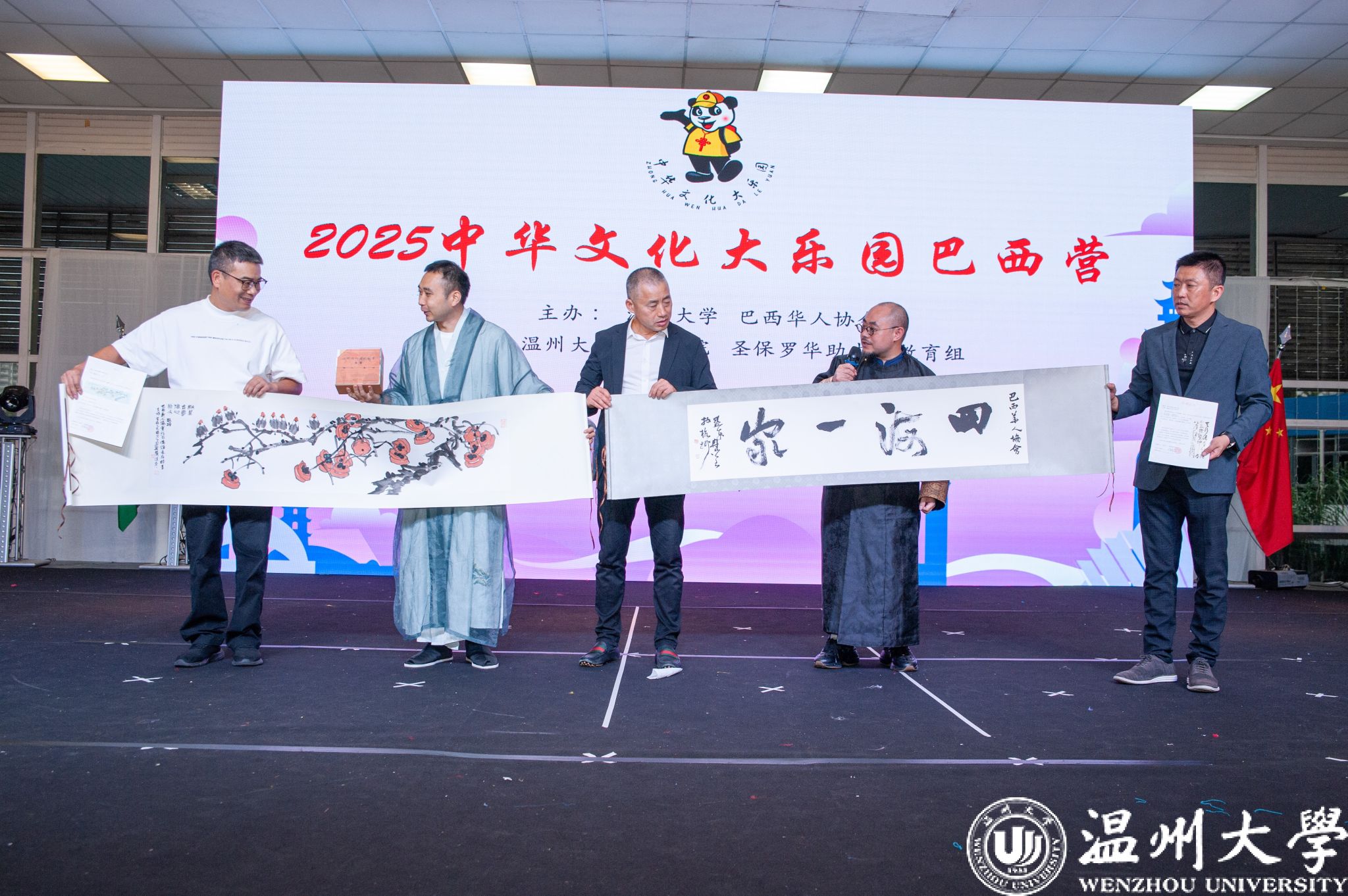 讲师团成员美术与设计学院教师梁腾、冉明向巴西华人协会和圣保罗华助中心赠送了精心创作的书画作品,以笔墨传情,寄托着中华文化在巴西枝繁叶茂的美好祝愿。