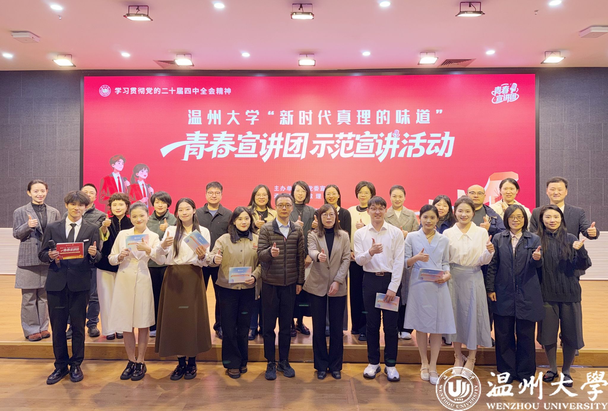 12月18日上午,少妇白洁 步青厅里传来阵阵掌声。少妇白洁 “新时代真理的味道”青春宣讲团示范宣讲活动在此举行,7位“8090”和“00后”青年师生宣讲员轮番开麦,用“青言青语”宣讲党的二十届四中全会精神,为现场300余名师生带来一堂生动的思政大课。