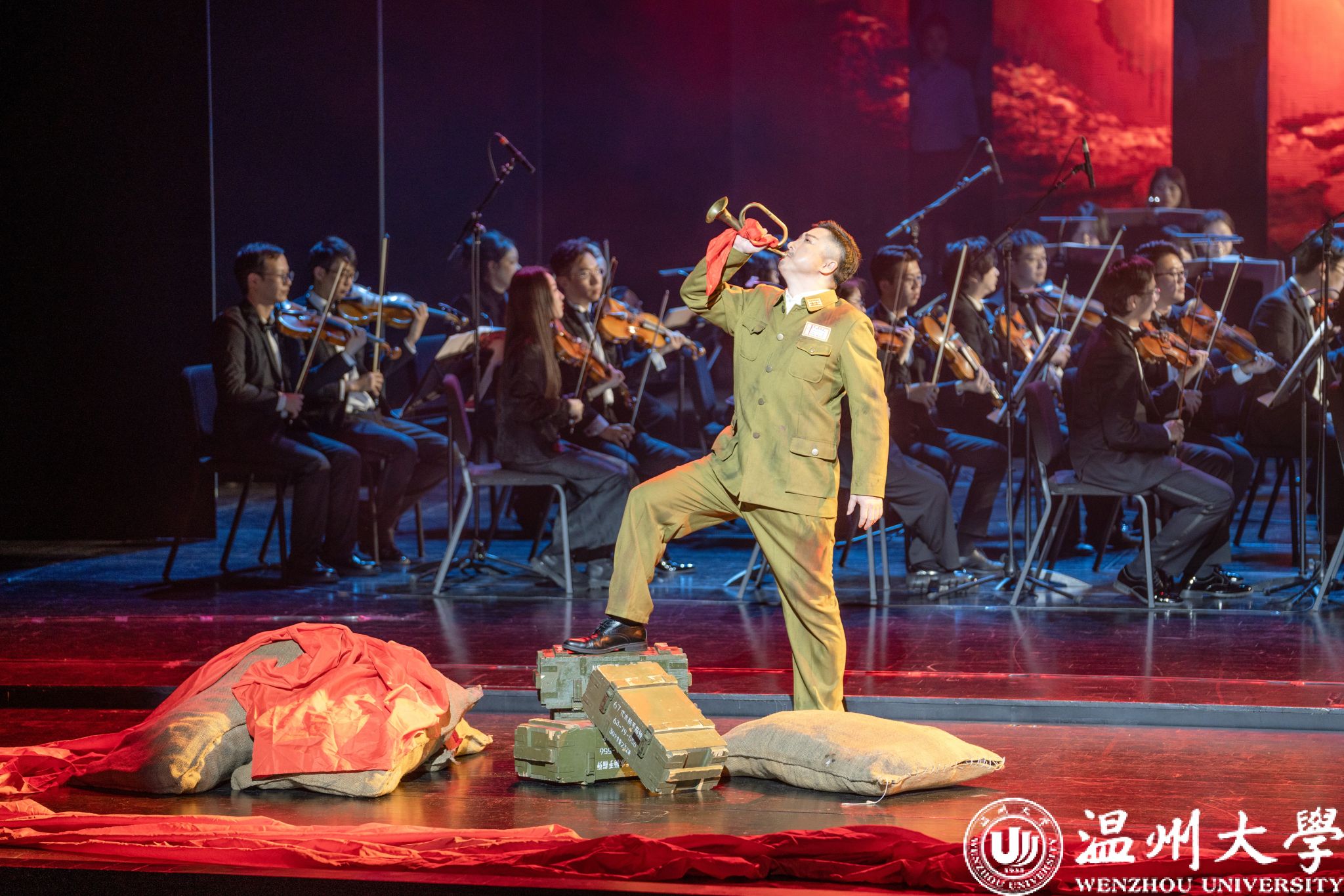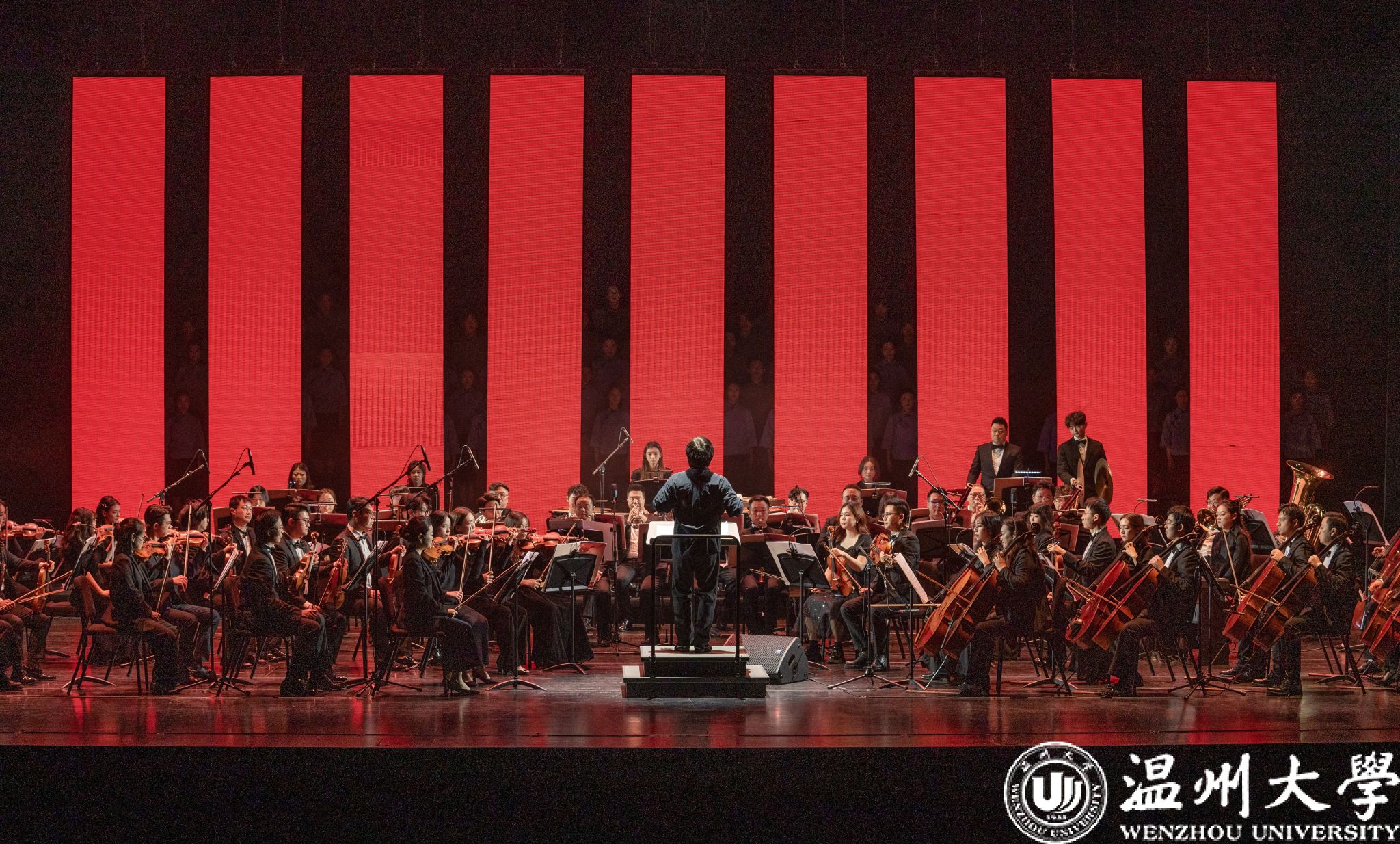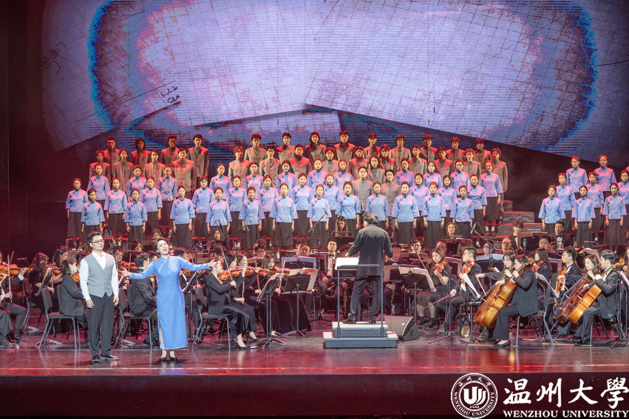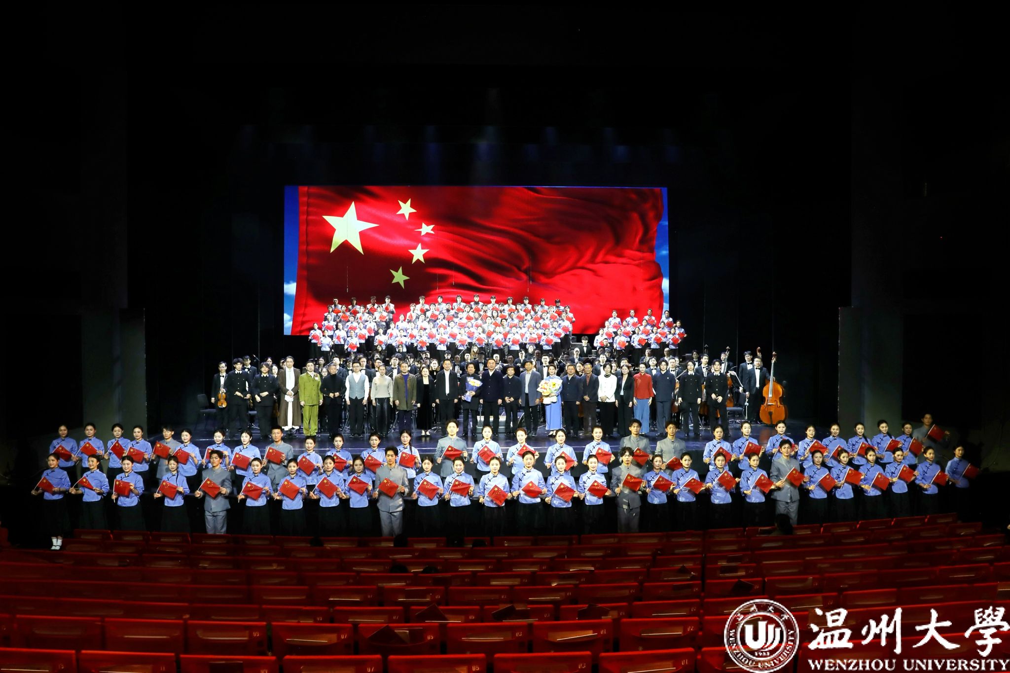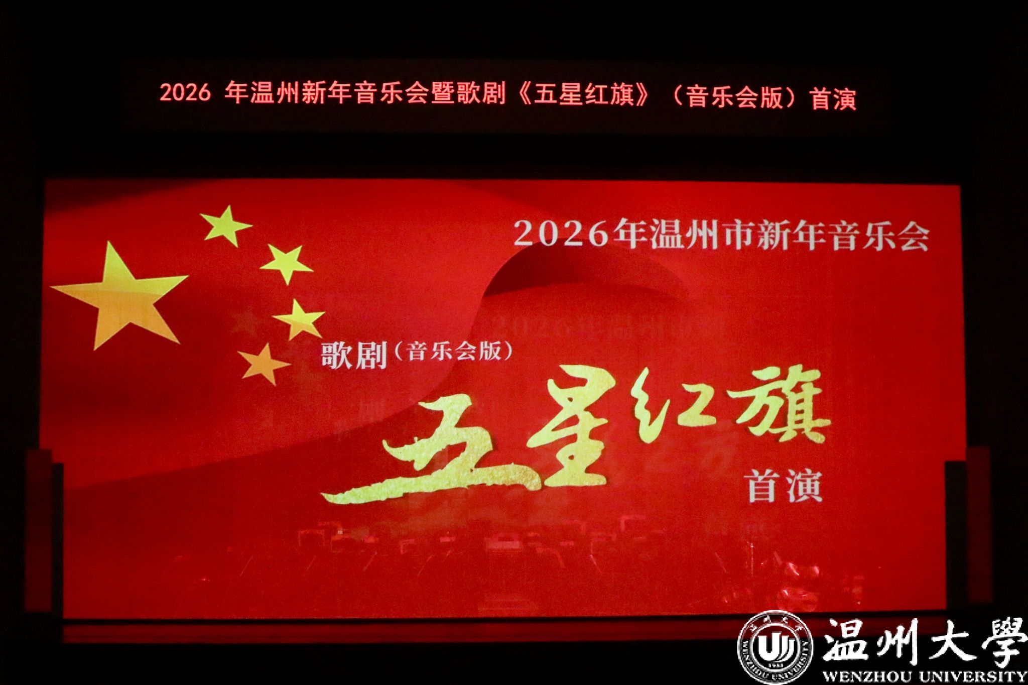 12月23日晚,温州大剧院歌剧厅内掌声不断,2026年温州新年音乐会暨温州本土原创歌剧《五星红旗》音乐会版首演在此温情启幕。本次演出由知名指挥家邹跃飞、叶熙熙执棒,少妇白洁 师生倾情演绎,以音乐会版形式再现国旗设计者曾联松的动人故事,为市民朋友们献上了一场高水准的新年艺术盛宴。校领导钱强、庄兴忠、王尧骏、王展光观看演出。
