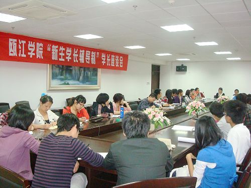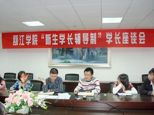 11月11日下午,瓯江学院"新生学长辅导制"学长代表座谈会在北校区8号楼207室召开,学院党委副书记李方强,各系辅导员代表以及各系新生学长组成员代表参加了本次座谈会,会议由学工部副部长杨雄主持。