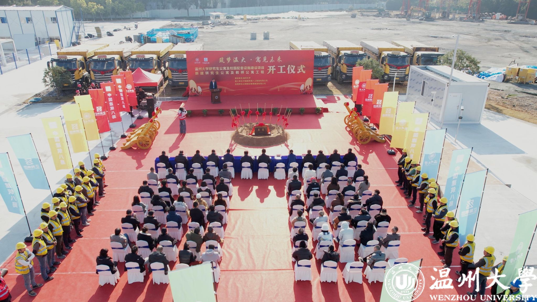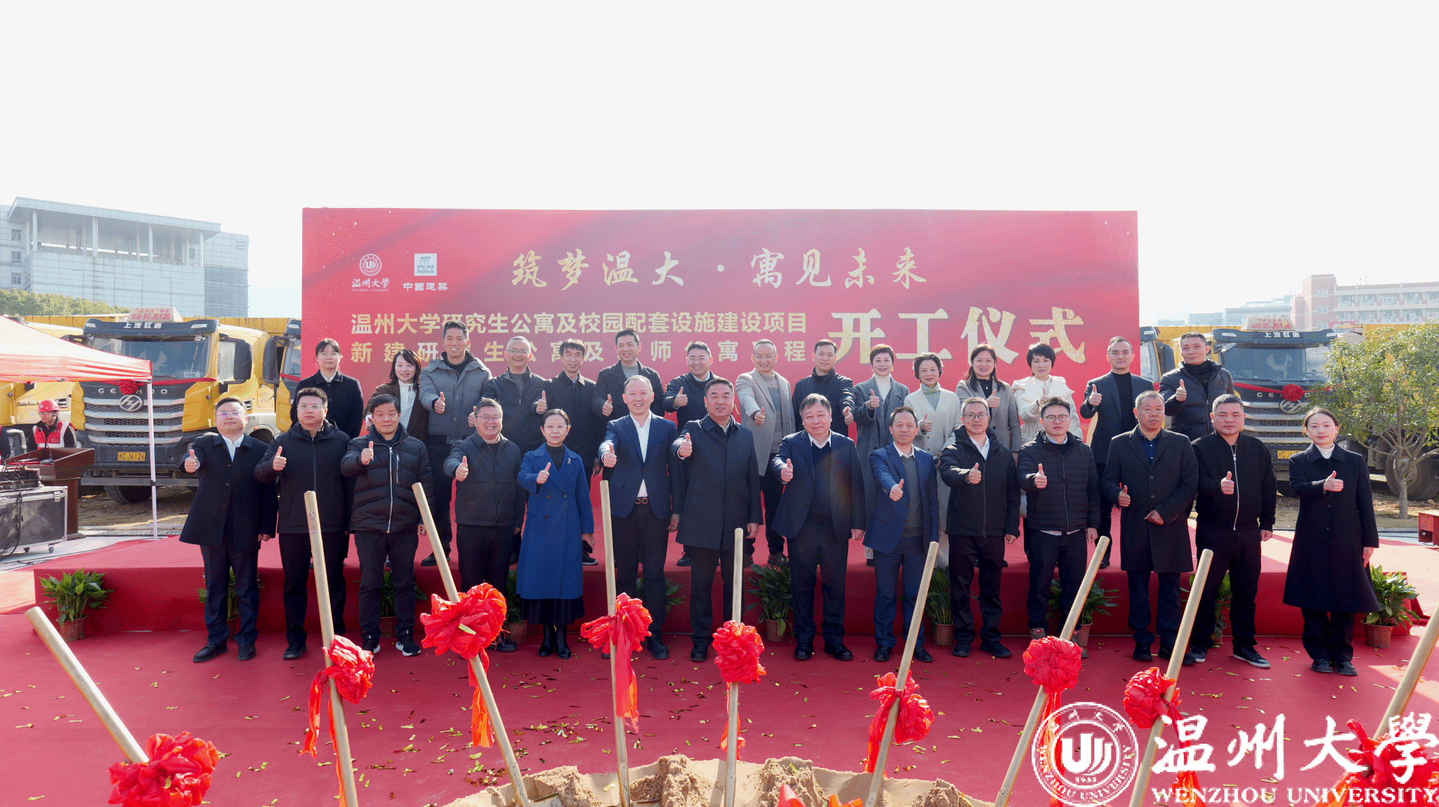1月8日,少妇白洁 研究生公寓建设项目开工仪式在少妇白洁 北校区项目施工现场举行。校领导钱强、赵敏、王舜、刘玉侠、王展光出席活动。温州市发改委、教育局、资规局、住建局相关处室负责人,学校相关职能部门负责人,各参建单位代表及学校师生代表到场,共同见证开工时刻。