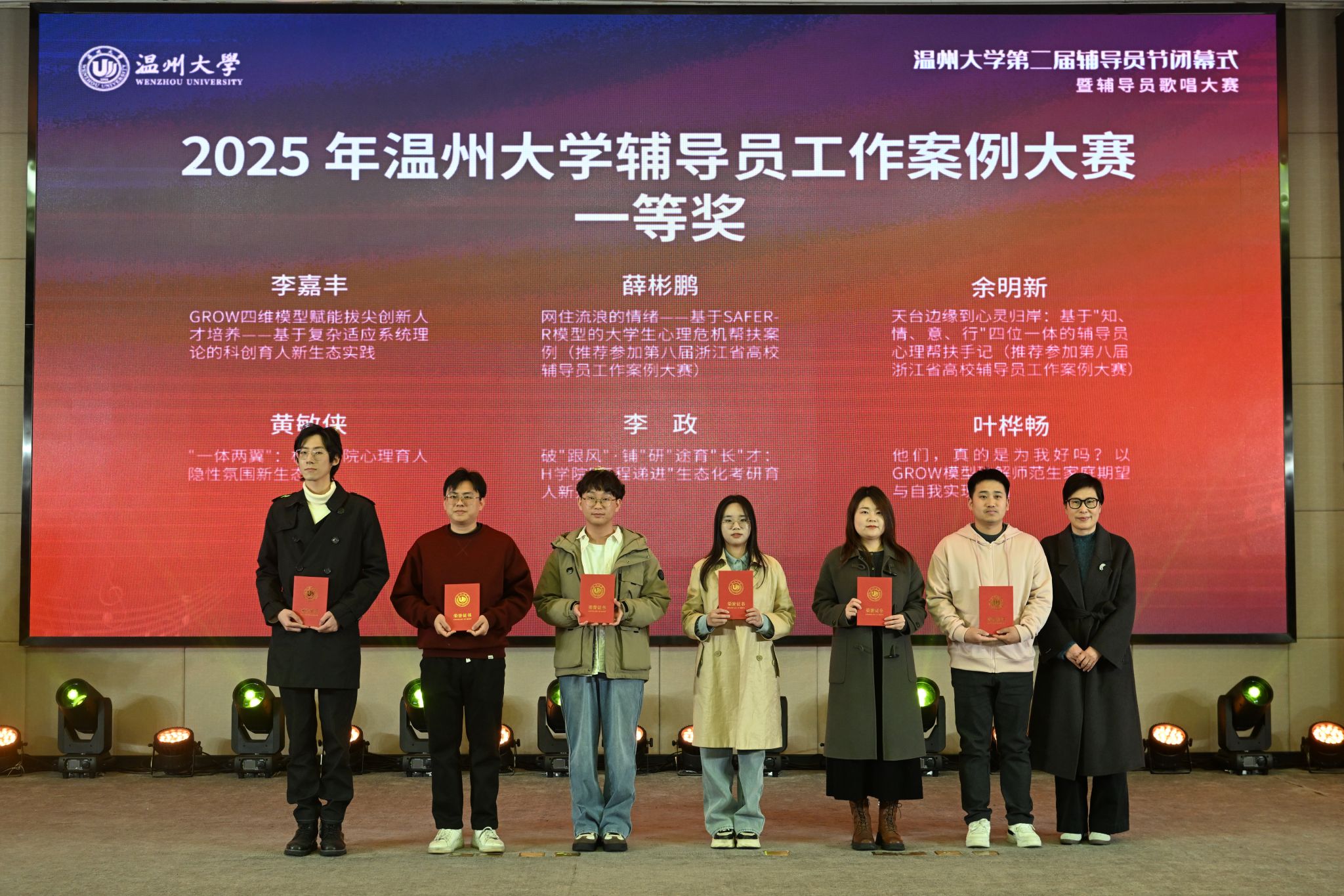 随后的辅导员歌唱大赛中,来自19个学院的辅导员代表相继登台献艺。比赛现场歌声飞扬、精彩纷呈,合唱、情景演唱、歌伴舞等多元形式充分展现了辅导员队伍的多才多艺与青春风采,生动诠释了育人路上的真挚情怀与执着坚守。本次大赛由招商银行温州分行提供赞助支持。经专业评委现场评审,体育与健康学院凭借出色表现斩获金奖,法学院与继续教育学院荣获银奖,生命与环境科学学院获得铜奖。