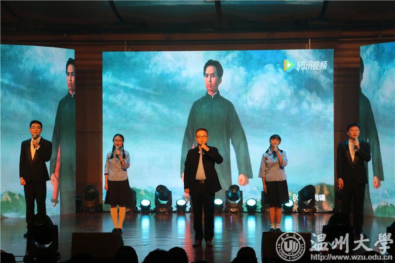 晚会节目丰富,图书馆馆员们朗声诵读毛主席诗词,现场挥毫习近平总书记语录,翩翩起舞放声高歌,赞美党和祖国。温大师生们以朗诵、配音、歌舞、小品、乐曲演奏等表演形式,通过吟咏红色诗词、弹奏红色旋律、传唱红色经典,歌颂党的光辉历史,歌颂英雄的伟大事迹。