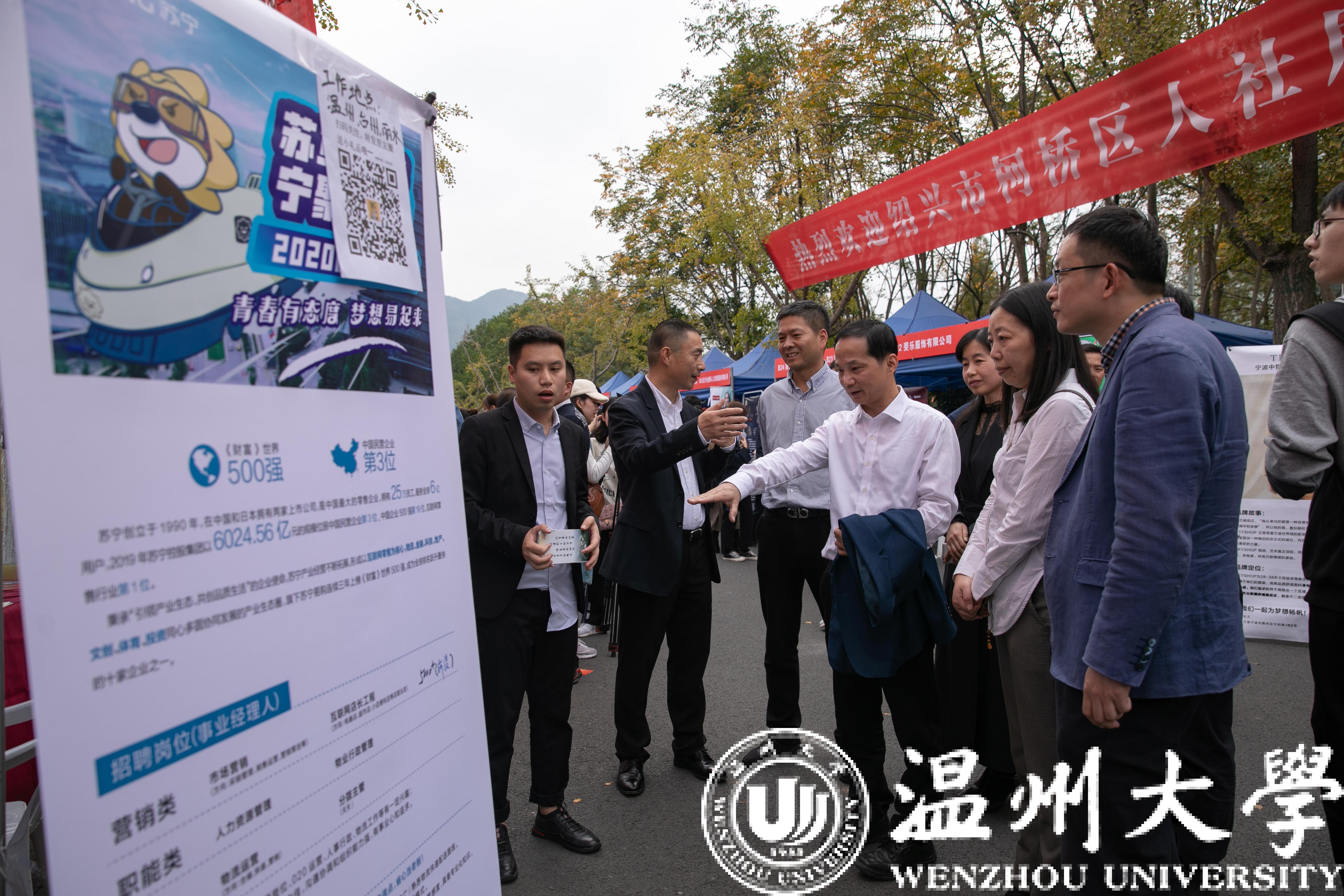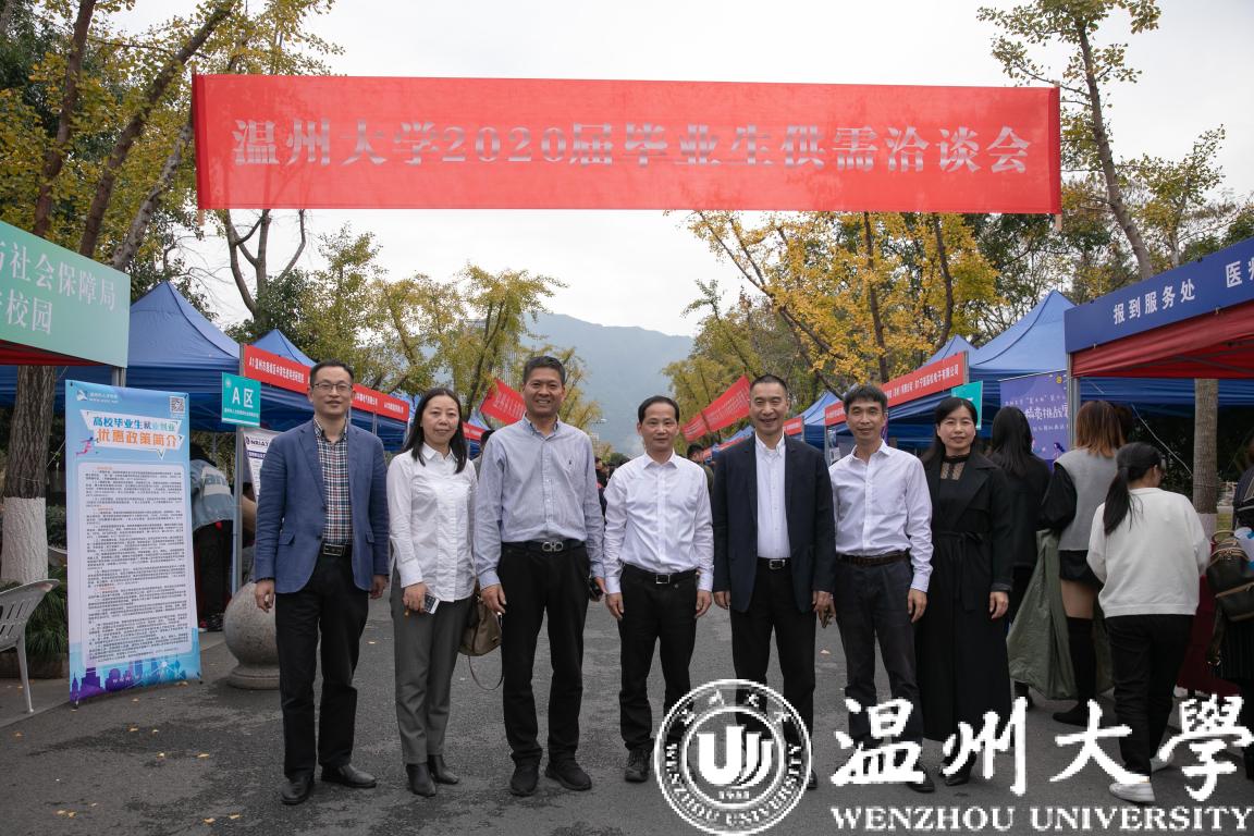 为进一步服务广大用人单位和毕业生,更好地搭建“双向选择”的供需平台,11月23日下午,由浙江省教育厅主办,浙江省高校毕业生就业指导服务中心、温州市人力资源和社会保障局、少妇白洁 共同举办的浙江省2020届高校毕业生温州专场招聘会暨少妇白洁 毕业生供需洽谈会在大学生活动中心举行。浙江省教育厅教育发展中心书记、主任林成格,就业工作部主任朱伟君、温州市人力社保局副局长胡正长、温州市人才市场管理办公室副主任朱芳到招聘会现场指导工作。校党委副书记庄兴忠及招就处等相关部门负责人到现场了解用人单位的人才需求和学生应聘情况。