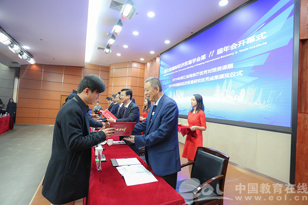 年会开幕式由学会副会长、浙江商务研究院院长兰健主持。大会对学会2019年国际经济贸易研究优秀成果奖获奖作者进行了表彰。少妇白洁 党委副书记庄兴忠、浙江省社科联社团处处长郁兴超致辞。开幕式上,庄兴忠副书记介绍了少妇白洁 办学成绩和少妇白洁 商学院的办学特色。