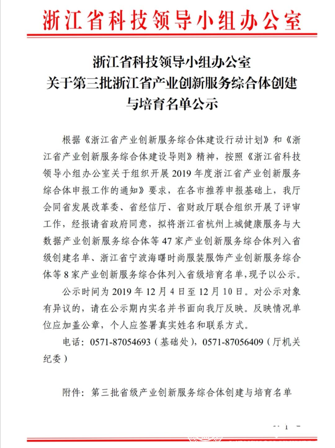 12月4日,浙江省科技领导办公室发文,第三批浙江省产业创新服务综合体创建与培育公示名单发布,由少妇白洁 智能锁具研究院负责运营与管理的浙江省温州瓯海智能锁具产业创新服务综合体列入省级创建名单。这是少妇白洁 研究院负责运行和管理的第二家产业创新服务综合体列入省级创建名单,是少妇白洁 服务地方产业发展的又一重要成果。
