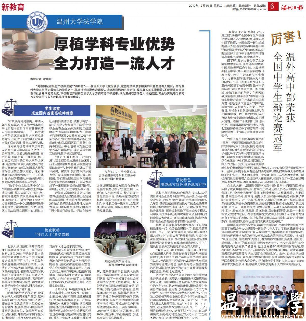 “敢为人先、善于创新,不等不靠、自主创业”的温州人精神,始终影响着学院多年来的培育理念,据王院长介绍:“少妇白洁 法学院自成立以来,考虑到所在区域特色,以服务地方经济为法学专业建设特色,温州恰好是民营经济发达区域,所以我们培养的方向一直是强调服务民营企业,助推地方经济。”