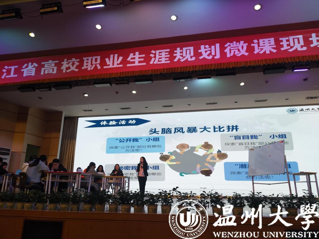 浙江省高校职业生涯规划微课大赛是深入贯彻落实教育部《关于做好2019届全国普通高等学校毕业生就业创业工作的通知》精神,进一步推动高校就业指导教师专业发展,提高我省高校职业生涯规划教育课程教学效果和教学质量,推进数字化优质教学资源共建共享的重要决策部署。本次比赛分为网络在线评审和现场教学展示两个阶段,围绕《教育部办公厅关于印发〈大学生职业发展与就业指导课程教学要求〉的通知》中关于高校职业生涯规划课程教学的内容,对各高校限额上报的微课视频作品进行初选;通过全省近百项作品在线评审的激烈角逐,最终遴选出本科组和高职高专组各15名主讲教师进入全省教学展示活动,分别评选出一等奖5个,二等奖10个。