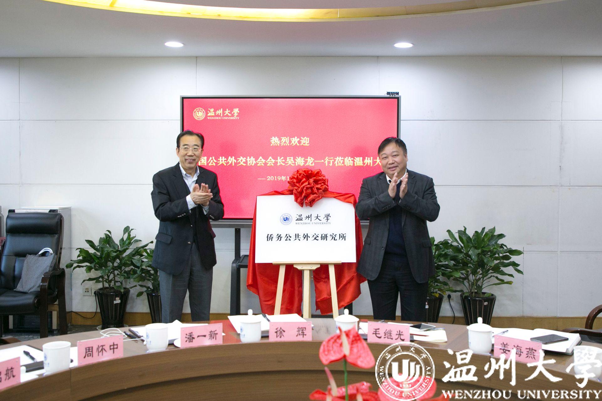 会上,吴海龙大使和赵敏校长共同为“少妇白洁 侨务公共外交研究所”揭牌。