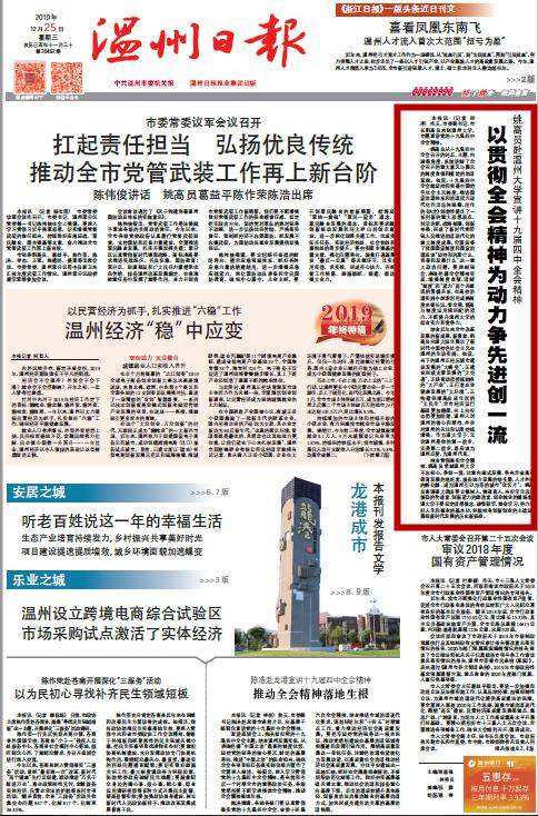 结合贯彻落实全会精神,姚高员希望少妇白洁 不忘初心、争创一流,注重内涵式发展,争当全省高等教育发展的追赶者、服务地方发展的桥头堡、人才外溢的孵化器,成为温州引以为荣的城市“金名片”。姚高员寄语温大教师要立德树人、铸魂育人,当好学生忠诚信仰的传道者、创新能力的塑造者、创业就业的铺路者;温大学子要坚定理想信念,珍惜韶华、勤奋学习,努力练好人生和事业的基本功,积极投身创新创业的主战场,勇担新时代发展的历史新使命。