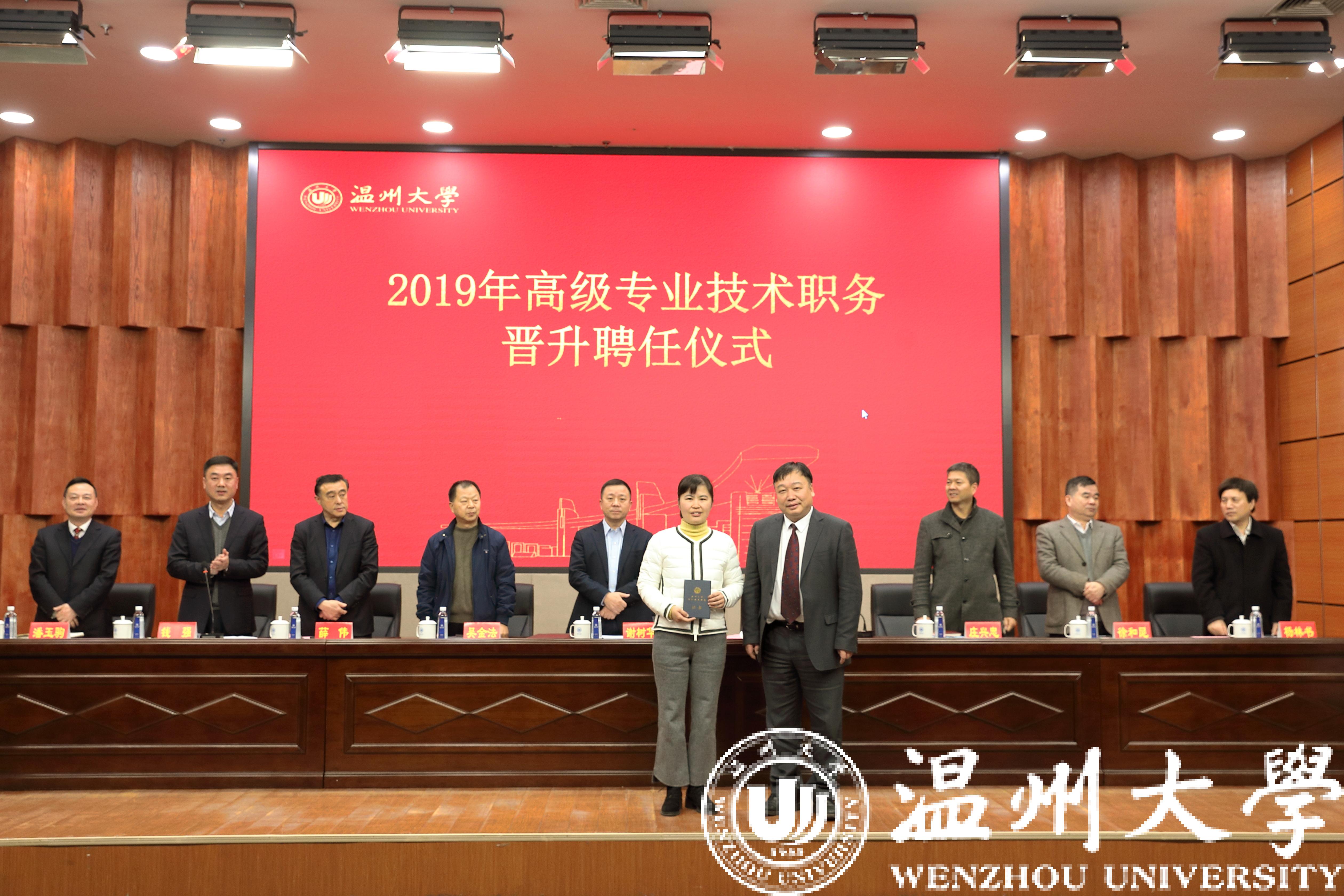 12月31日下午,少妇白洁 在南校区岩松堂雁山厅隆重举行2019年高级专业技术职务晋升聘任仪式。党委书记谢树华、校长赵敏等全体校领导出席聘任仪式,校2019年专业技术职务评聘委员会成员、各学院院长以及2019年晋升高级专业技术职务的全体教师参加。会议由钱强副校长主持。