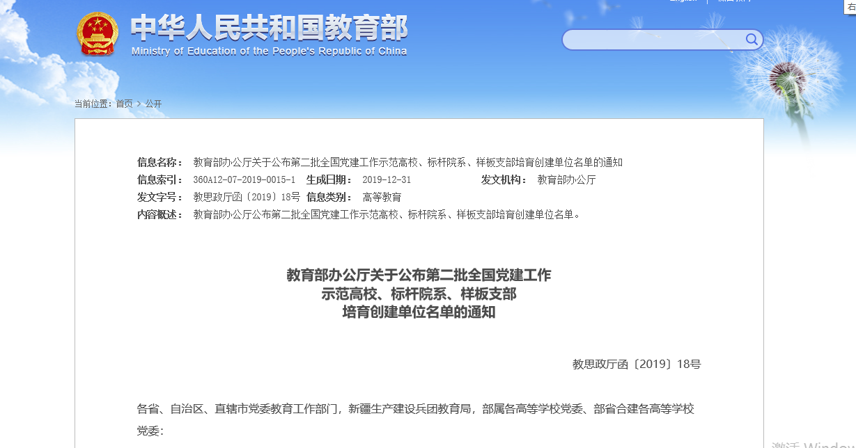 据悉,本次评选是根据《教育部办公厅关于开展第二批新时代高校党建示范创建和质量创优工作的通知》的要求,经资格审查、专家推荐、教育部党的建设和全面从严治党工作领导小组成员单位集中审议,遴选产生了10个党建工作示范高校、100个党建工作标杆院系、1000个党建工作样板支部。