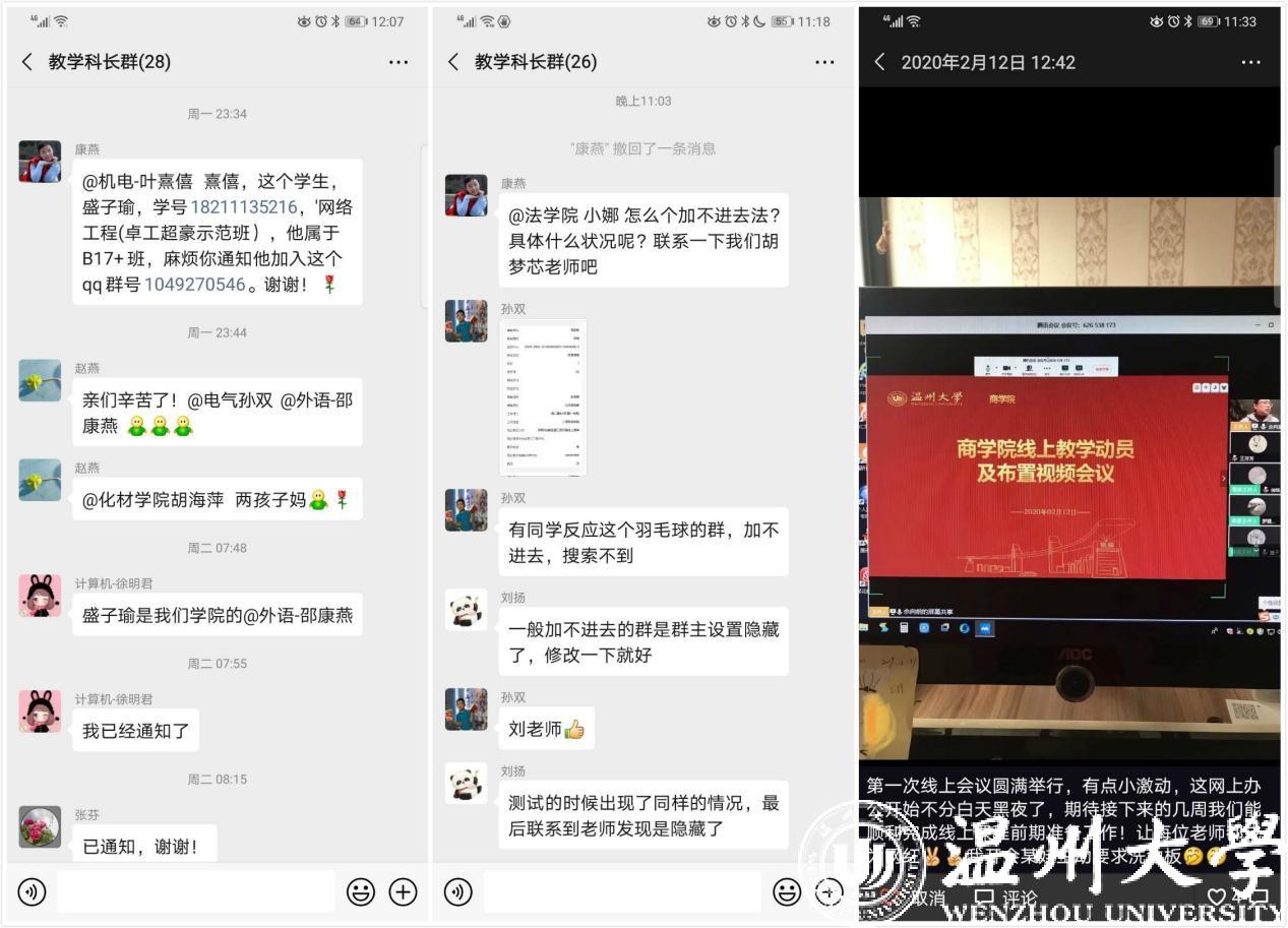 “战疫”前期,教务处刘扬、马莉莉、问海燕、郑寒芳、王丹、李亚茹等人迅速起草线上教学工作方案、制定转专业线上工作步骤及流程、细心指导居家办公的教务管理员们进行系统安装、设计异动学生线上办理事物流程,实时回复和指导学院及师生各项线上办公事宜等工作;罗晓敏、许好好分别在线上课程公共服务平台的落实与使用、毕业设计与专业实习的执行与安排等方面对各学院及教师予以指导帮助。