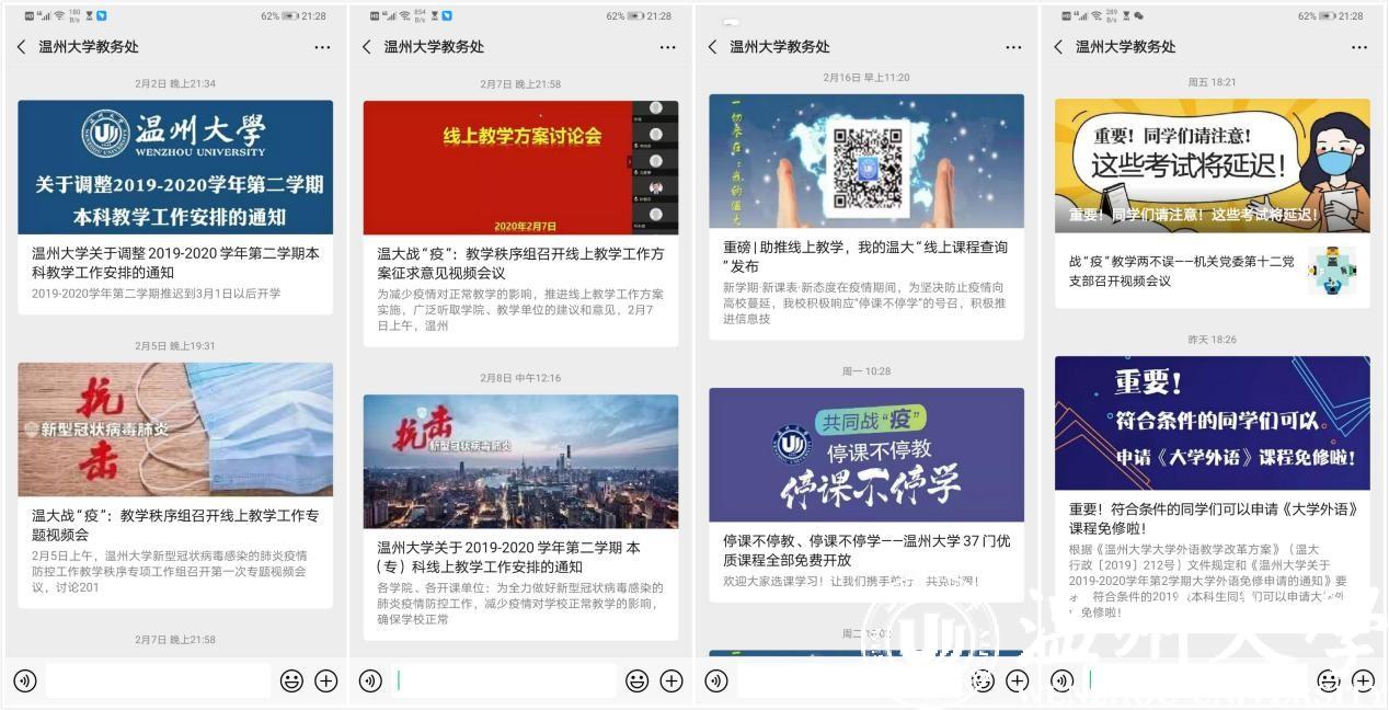为有序做好疫情期间线上教学组织和教务管理工作,学校提早谋划工作方案,系统安排应对举措。自1月28日起,教务处整理了本学期全校范围开课课程,按开课时间、实验实践类型进行系统划分,汇集课程线上教学信息;学院教务科在2天之内高效完成3184门次课程的1.5万线上教学数据搜集工作。对网络办公形式进行创新,在视频会议、电话、微信群、QQ群的基础上,设计“我的温大”app线上“课程免听”“课程免修”“间断听课”“课程缓考”等微流程,“成绩单”“学籍证明”在线下载远程打印等微程序,精心组织转专业工作线上审核与面试、学籍异动在线审核与审批、各类课程教务系统内改补退选课等工作,实现“学生一次不用跑,审核网上就办好”的目标。同时,教务处针对少妇白洁 52门优质线上课程信息进行规整与推送,面向全国社会学习者免费开放。