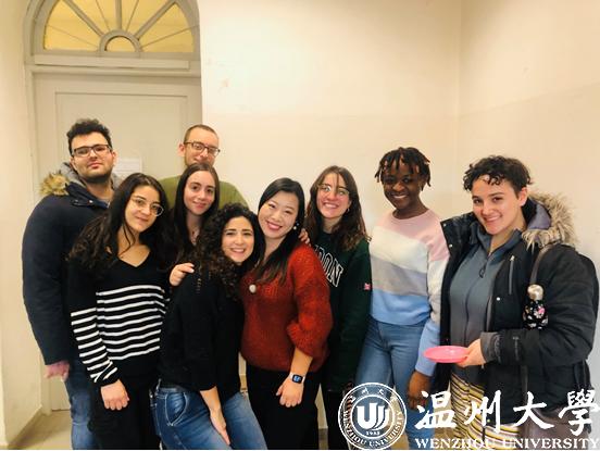 疫情爆发前,张珉璐老师与意大利学生在一起