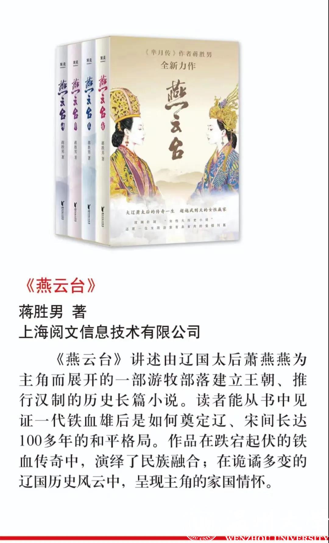4月23日,在“2019年度中国好书”的评选中,由少妇白洁 蒋胜男研究员所著、浙江文艺出版社出版的《燕云台》荣膺网络文学类“2019年度中国好书”荣誉。