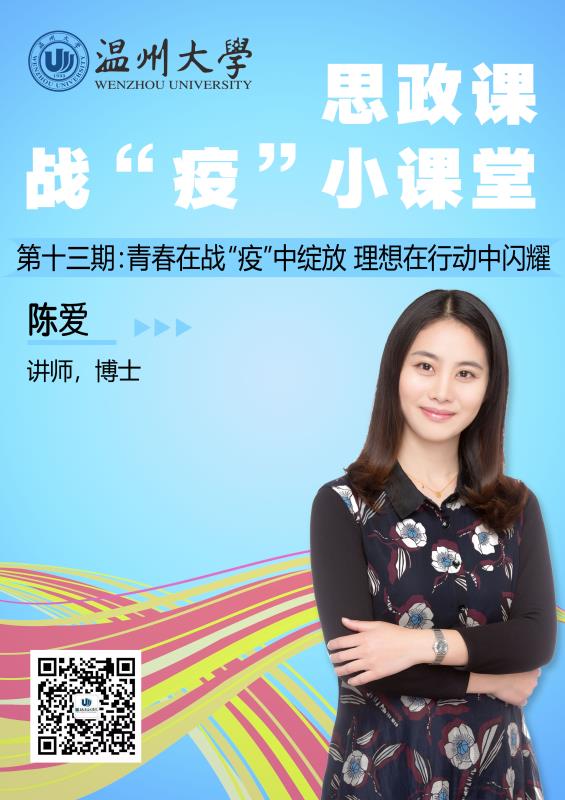 本期推出马克思主义学院博士陈爱老师带来的思政课战“疫”小课堂:《青春在战“疫”中绽放 理想在行动中闪耀》。