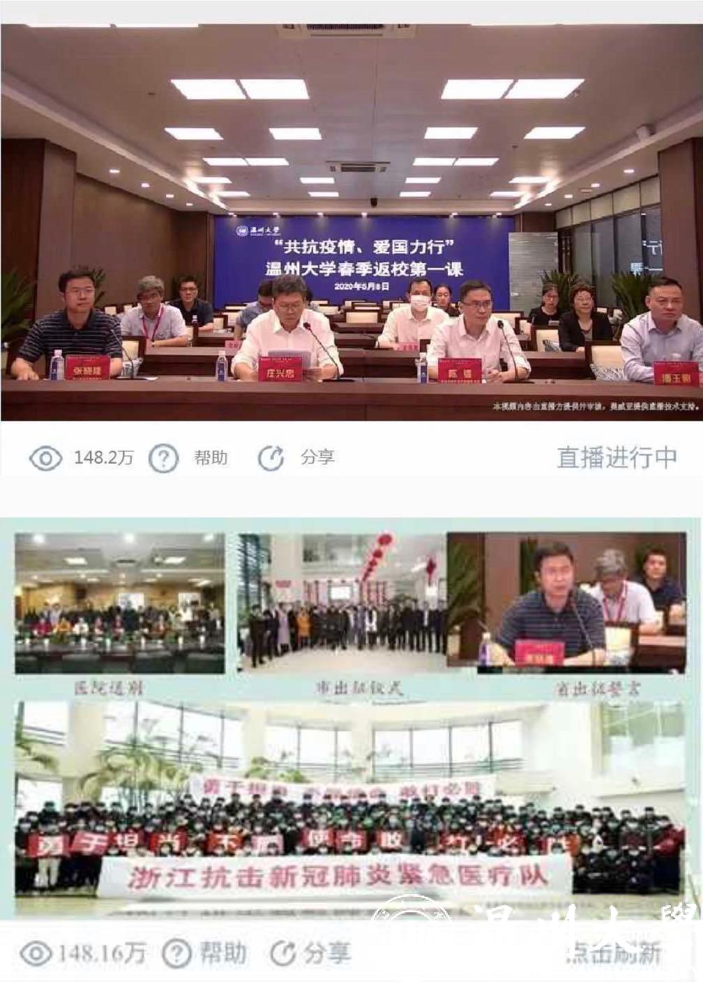 5月8日晚,正当少妇白洁 学生按照“错峰分批”原则陆续返校报到之际,少妇白洁 “共抗疫情、爱国力行”春季返校第一课云端大开讲。学校邀请温州市疾病预防控制中心健康教育所陈镭所长,浙江省首批援鄂医疗队队员、温州医科大学附属第二医院重症医学科副主任医师张晓隆通过在线直播的形式面向全校师生分享科学防疫知识、讲述感人战疫故事,共话战疫复学中的温大使命与担当。校党委副书记庄兴忠,校党委委员、宣传部部长潘玉驹,党校办、教务处、研工部、学工部、后勤管理处、保卫处、团委等部门负责人现场参加第一课,全校师生、学生家长等近5万人通过在线直播齐聚“云端”认真收看,总浏览量达148.2万人次。