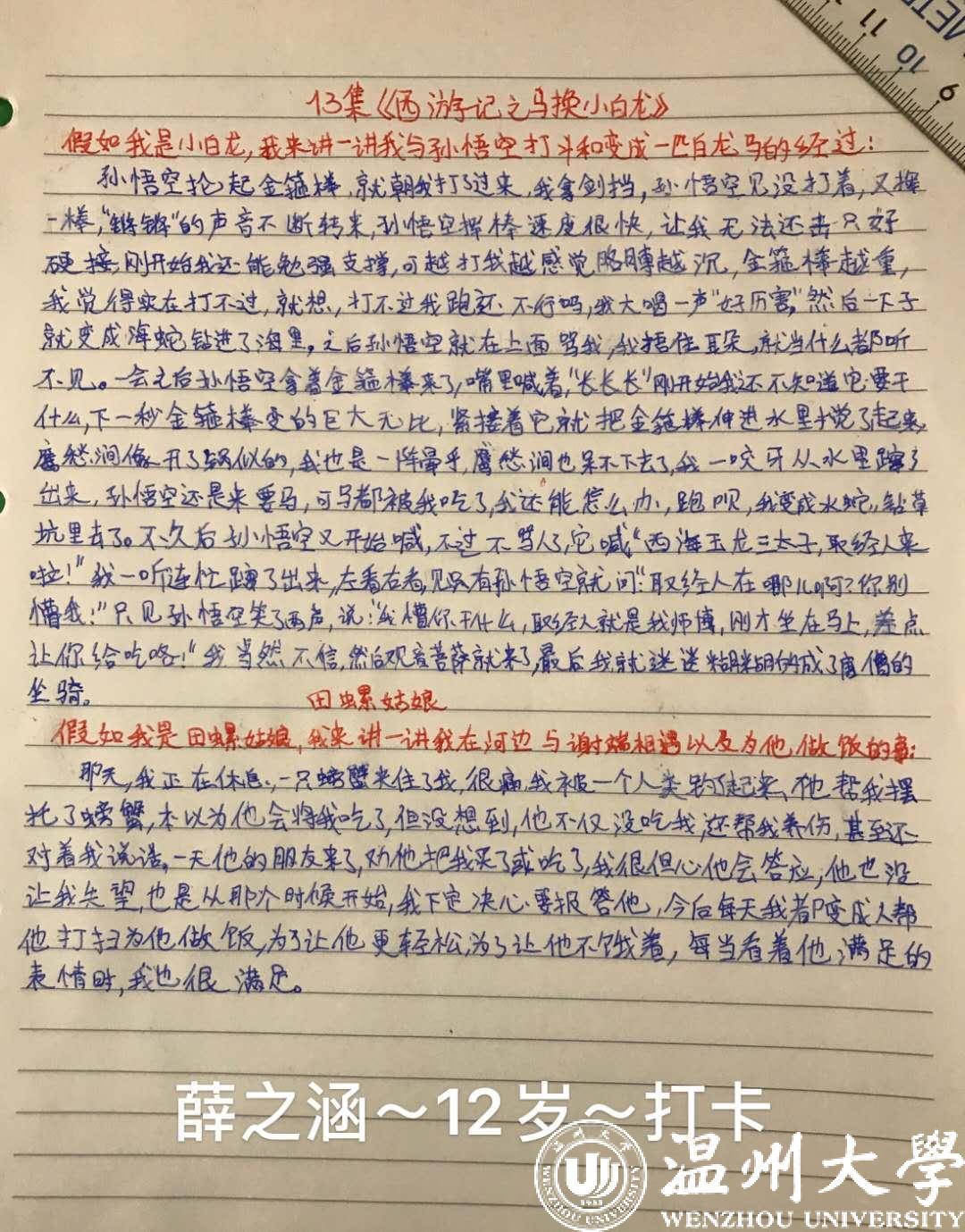 “悟空啊悟空,也不知道你还会不会回来……”5月12日,来自意大利的薛之涵小朋友在学习群中“打卡”《西游记——第12集“紧箍咒”》。这是她参加少妇白洁 举办的首届“亲情中华·为你讲故事”网上夏令营的第12天,之涵妈妈夸她“中文越说越流利,每天都有进步”。