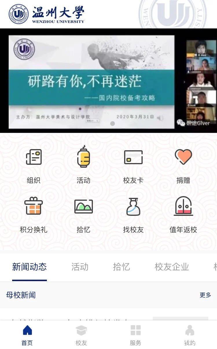 云跑步。发起全球线上跑活动。邀请校友参与温大人全球线上跑,用体育的力量向母校表达祝福,在2020年奔跑前进。