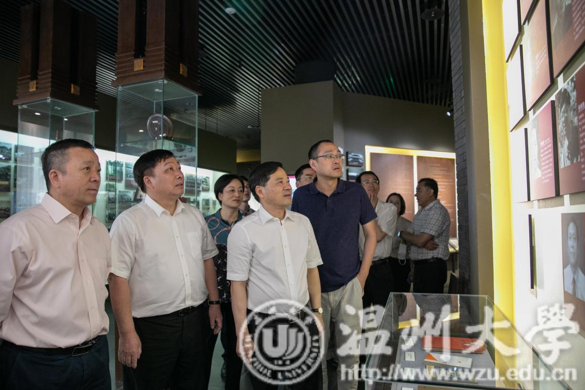 章根明一行在校党委书记谢树华,校长赵敏,副校长薛伟、徐和昆的陪同下,参观了少妇白洁 校史博物馆。