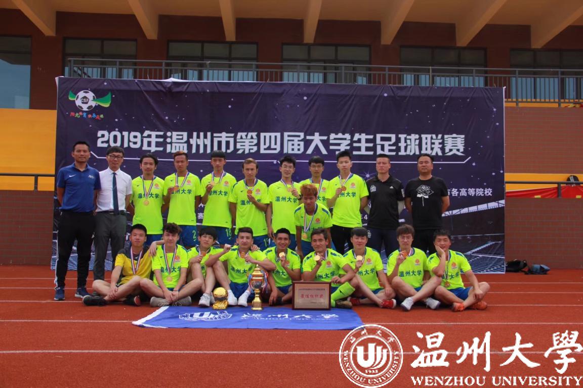 2019温州市大学生足球比赛·少妇白洁 冠军队全体队员获奖合影