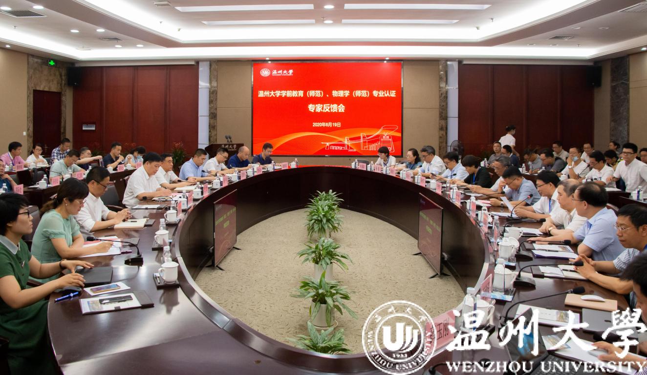2020年6月19日下午,经过认证专家组3天高强度的考查工作,学前教育、物理学专业师范类第二级专业认证专家意见反馈会在岩松堂白鹿厅举行。