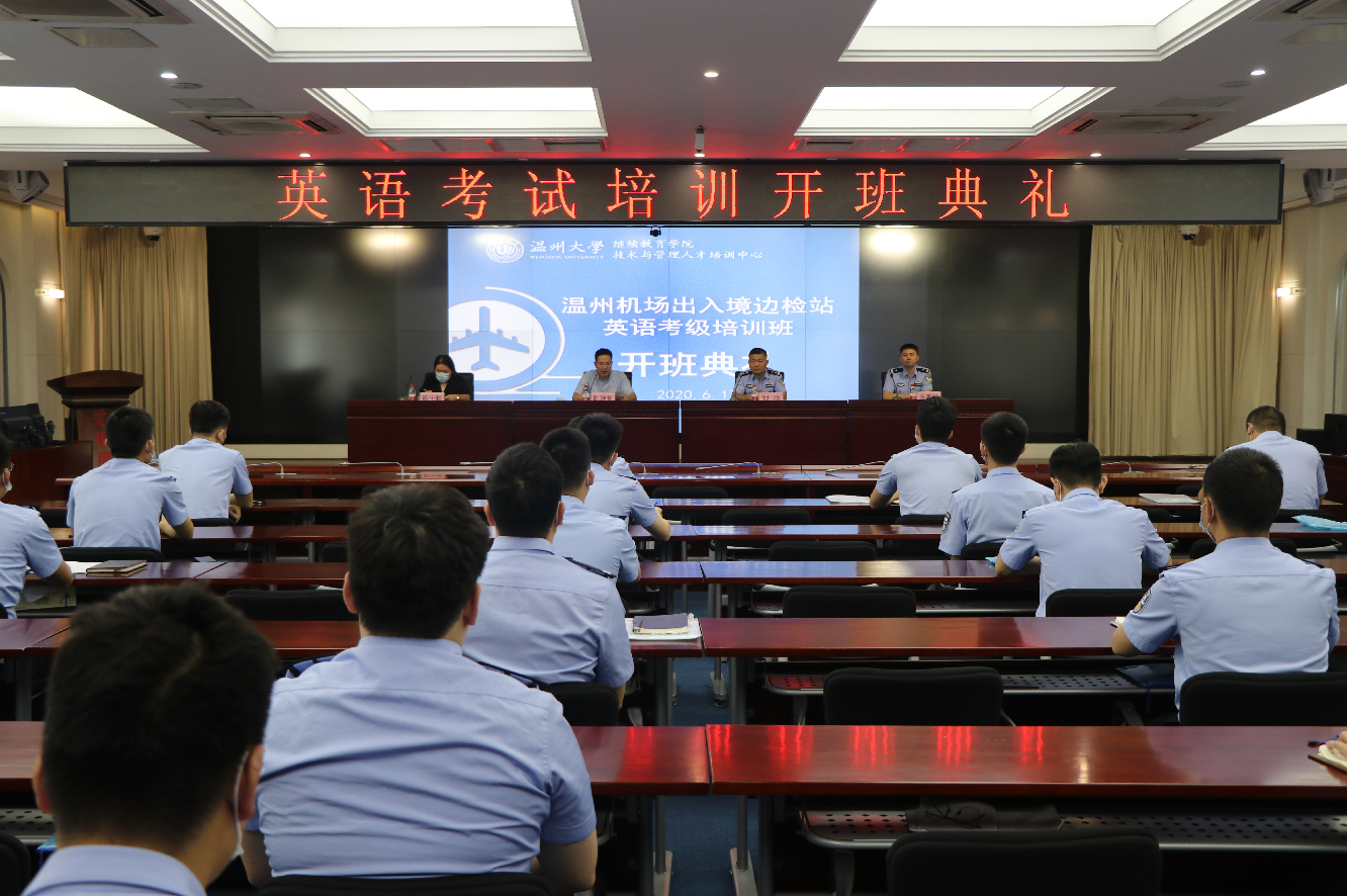 温州机场出入境边检站因其国际化的工作性质,提出“全员学外语大提升计划”,由少妇白洁 继续教育学院培训部联合少妇白洁 海外教育服务中心为其量身定制为期三个月的全国英语等级考试培训。昨天参与培训的46位学员正式开班了!