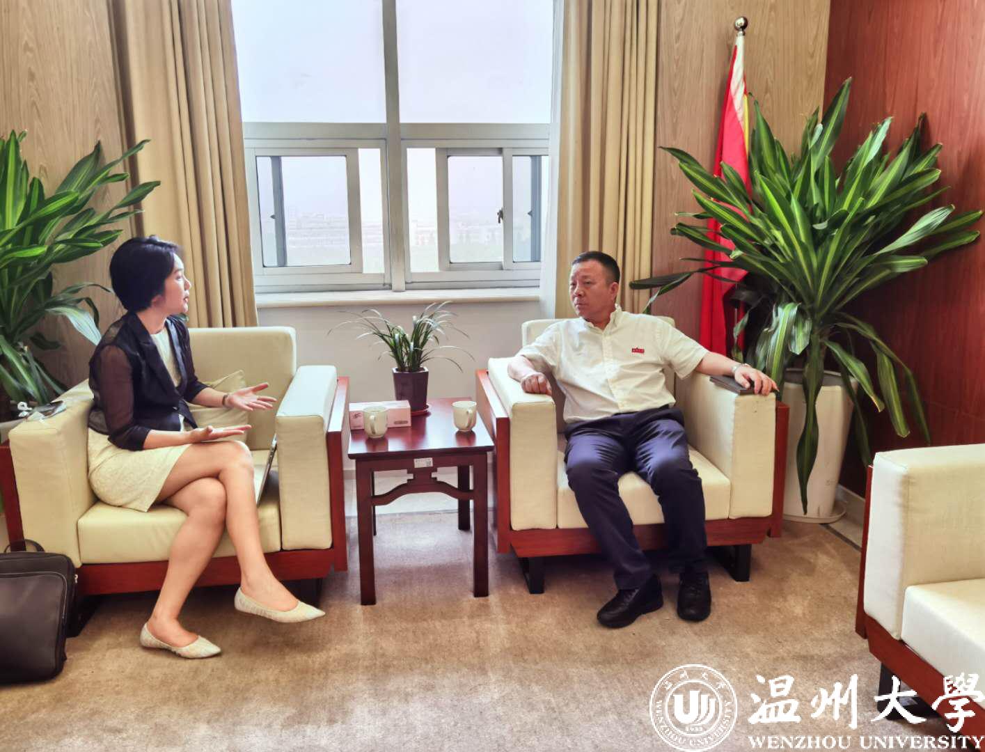 6月22日下午,温州市留学人员和家属联谊会(下称“温州市留联会”)会长、温州市侨联常委卢琼博士来访少妇白洁 。校党委书记谢树华热情接待了卢琼,党校办、以“侨”为特色省部共建办相关负责人陪同。